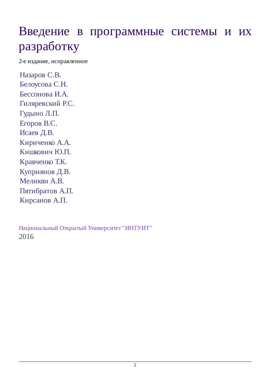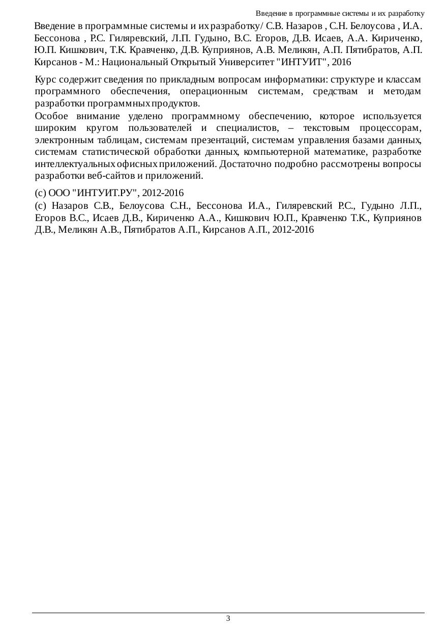Введение в программные системы и их разработку
