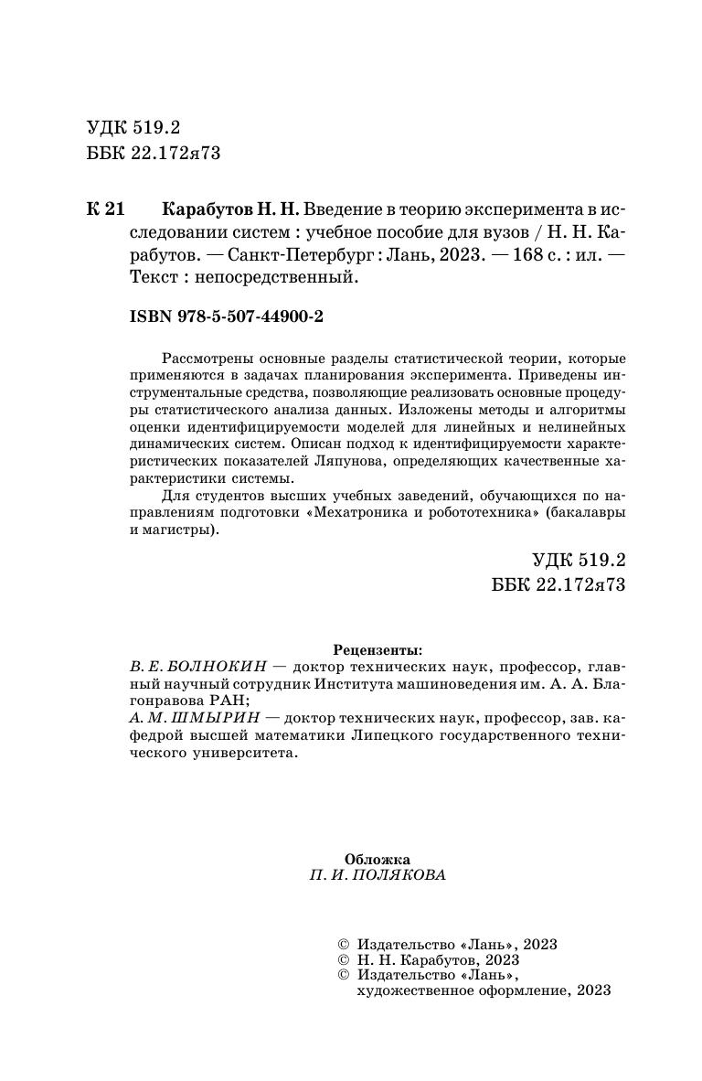 Рассмотрены основные разделы статистической теории, которые применяются в задачах планирования эксперимента. Приведены инструментальные средства, позволяющие реализовать основные процедуры статистического анализа данных. Изложены методы и алгоритмы оценки идентифицируемости моделей для линейных и нелинейных динамических систем. Описан подход к идентифицируемости характеристические показатели Ляпунова, определяющих качественные характеристики системы. Для студентов высших учебных заведений, обучающихся по направлениям подготовки «Мехатроника и робототехника» (бакалавры и магистры).