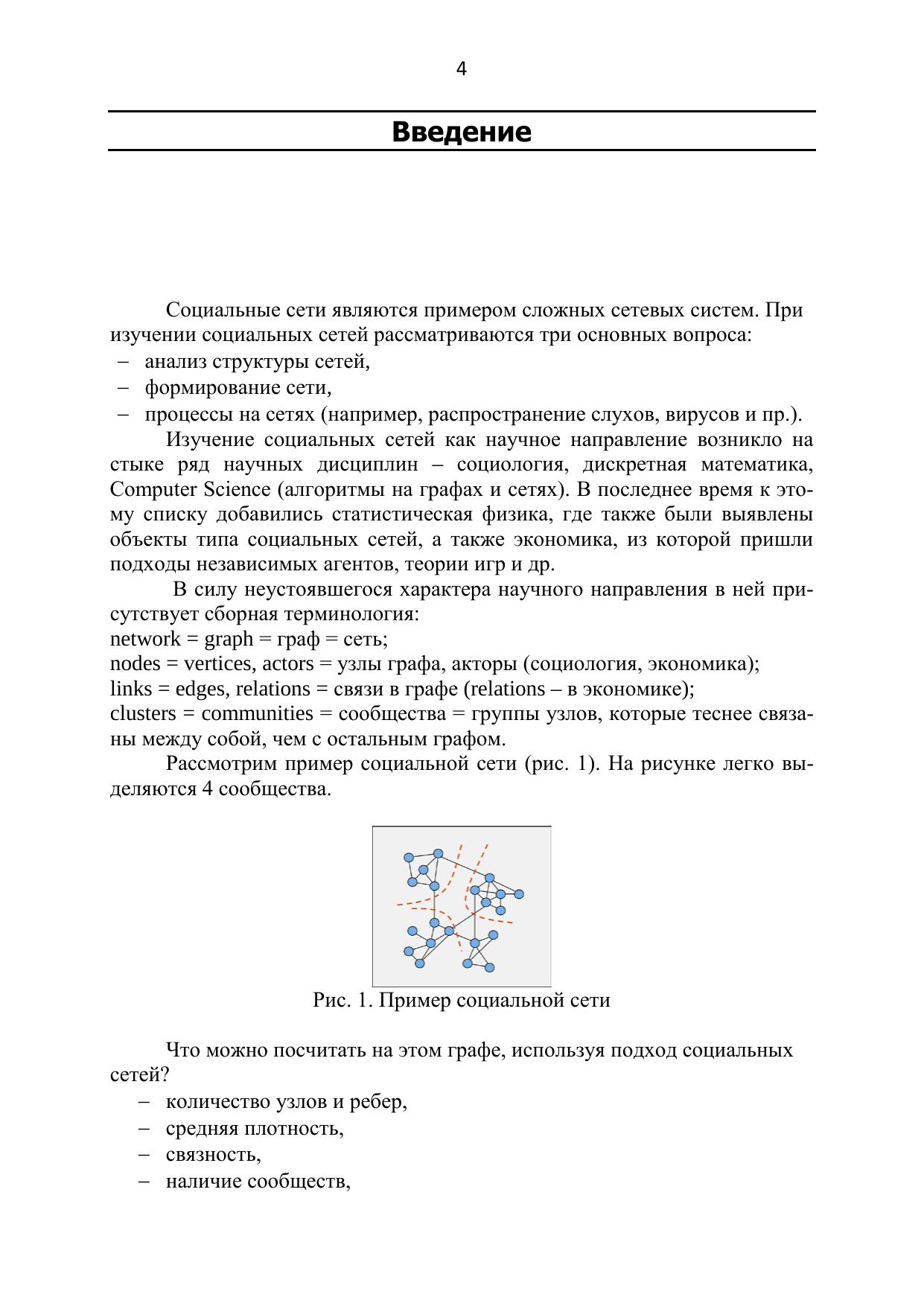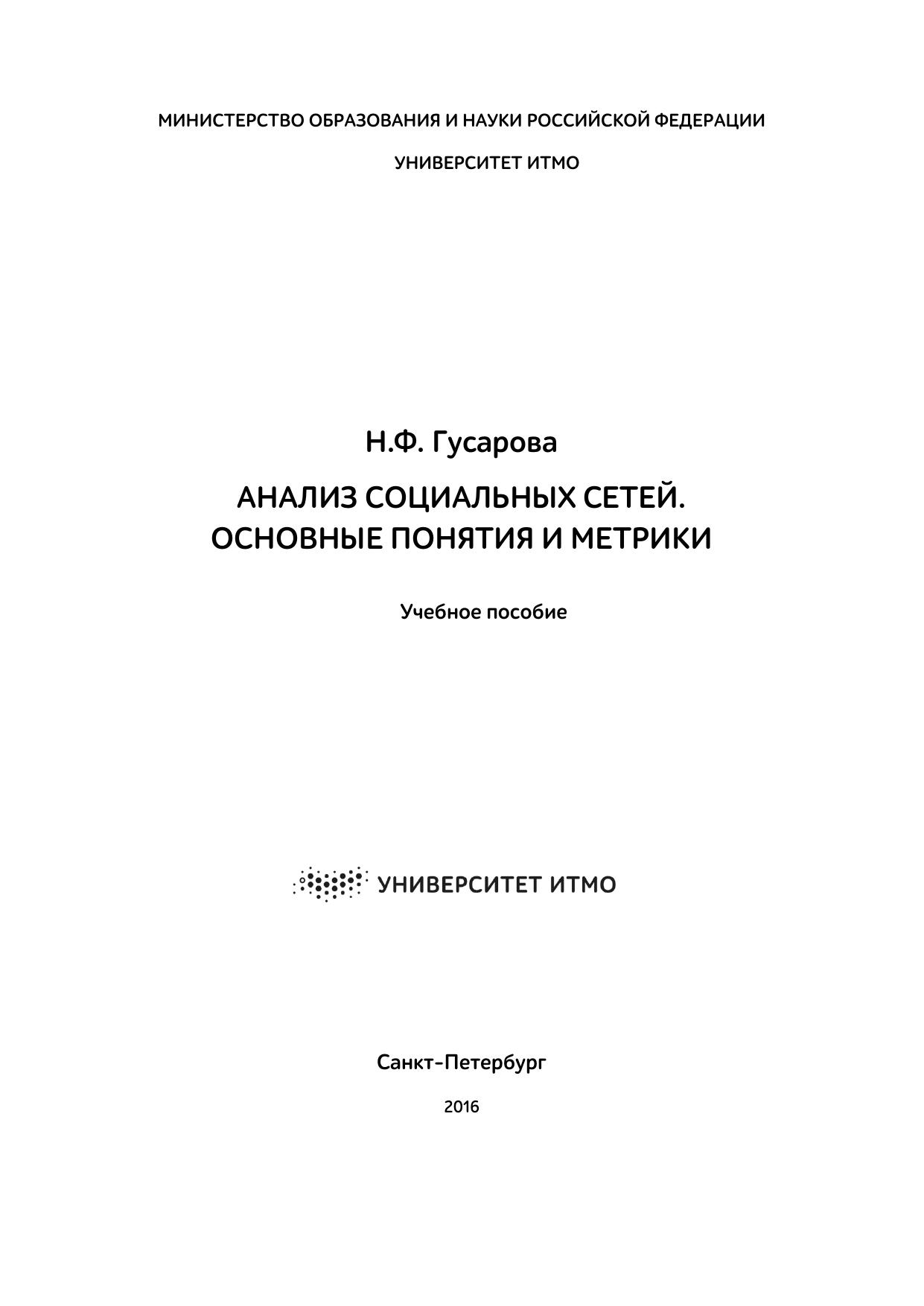 Пособие охватывает теоретический материал, необходимый для усвоения программы курса «Анализ социальных сетей. Основные понятия и метрики». Рассматриваются вопросы, связанные с базовыми понятиями в анализе социальных сетей, такими как комплексные сети, степенные законы распределения, случайные графы, малый мир и т.д. Особое внимание уделяется метрикам, используемым при анализе социальных сетей, и их содержательной интерпретации.