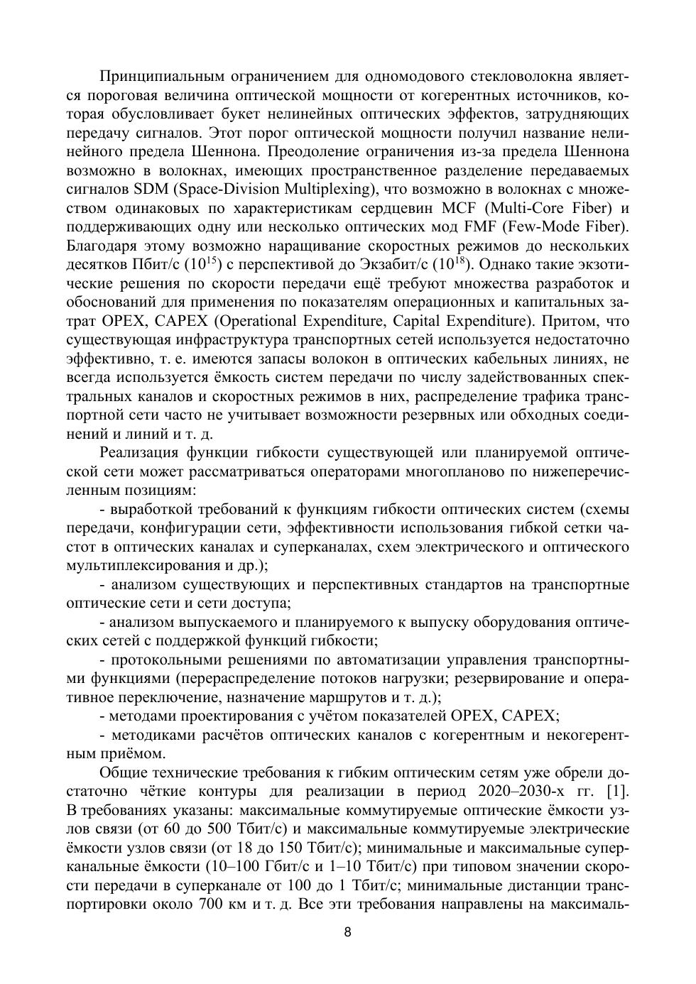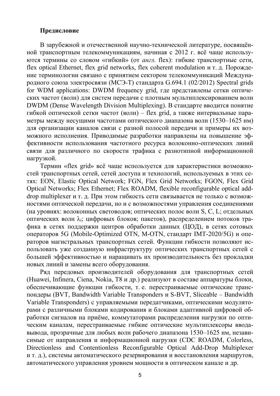 Рассматриваются международные стандарты, определившие построе-ние гибких оптических сетей поколения 5G на основе оптических техно-логий, технические решения по отдельным компонентам оборудования, функциональная гибкость, реализуемая транспондерами нового поколе-ния VBT, S-VBT и оптическими мультиплексорами C-D-C-G-ROADM, организация управления в сети на основе T-SDN, принципы сетевой синхронизации при циклической и пакетной передаче, методы проекти-рования и расчётов.