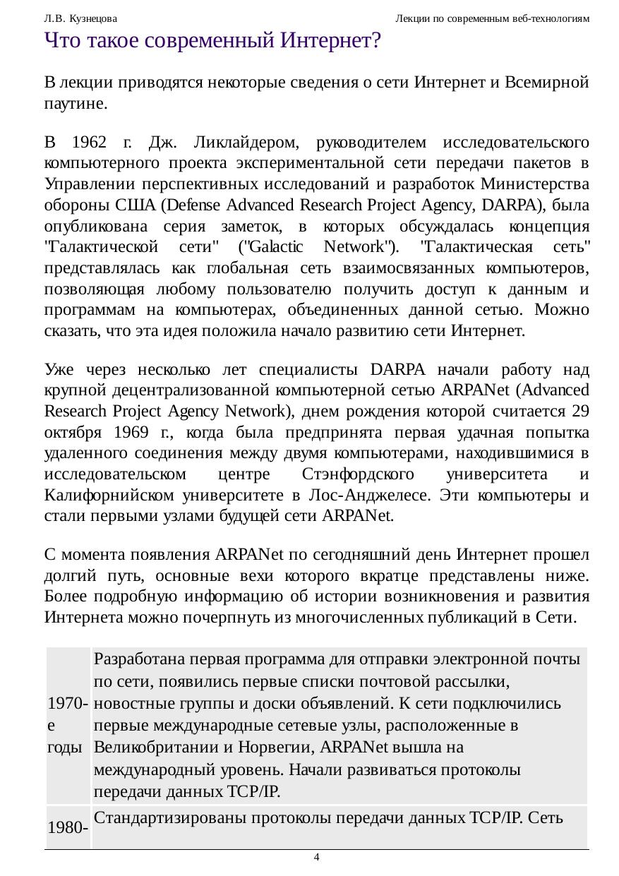 гипертекстовой разметки HTML и каскадных таблиц стилей CSS. Описаны основные ограничения полиграфии и цветового оформления веб-сайта. Данный курс представляет собой пособие по теоретическому и практическому освоению технологий создания веб-страниц – языка разметки гипертекста HTML и каскадных таблиц стилей CSS. В лекциях приводится история развития Интернета и