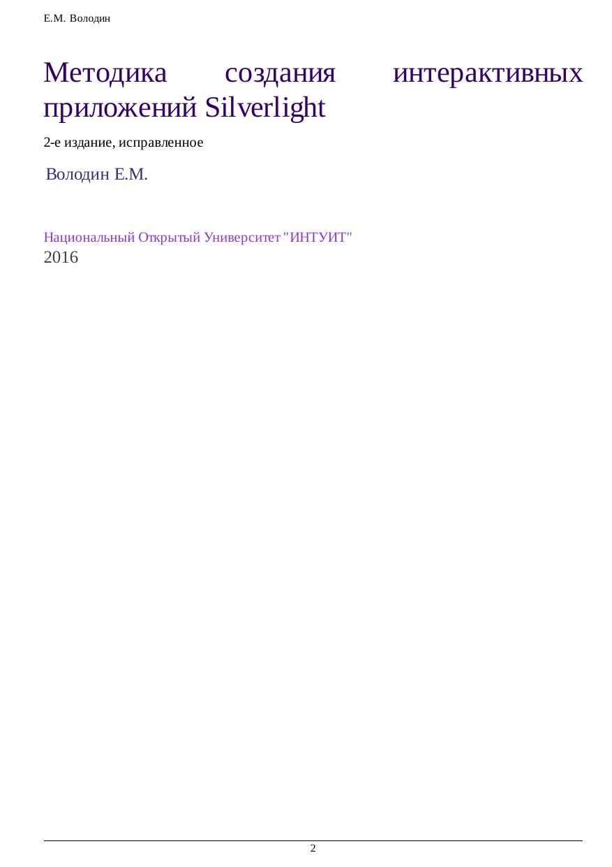 Методика создания интерактивных приложений Silverlight