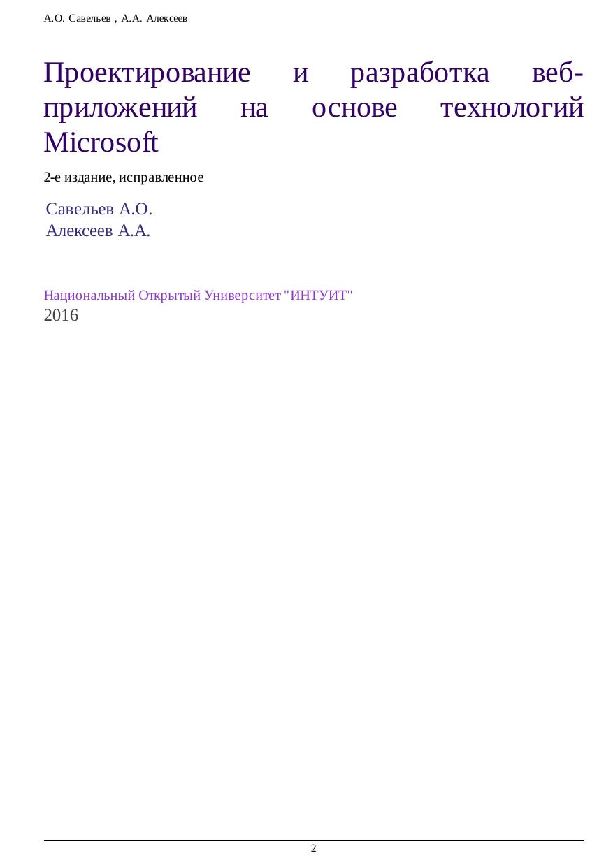 Проектирование и разработка веб-приложений на основе технологий Microsoft