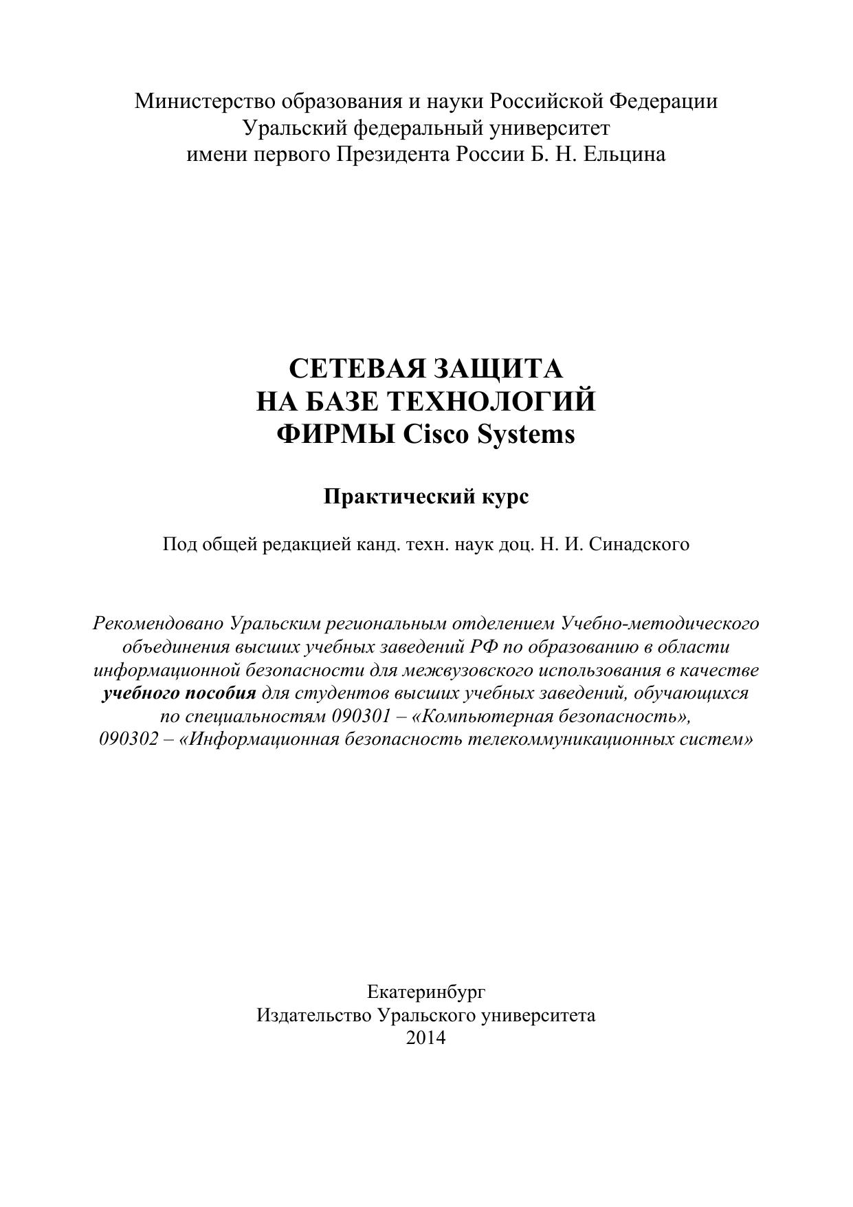 Сетевая защита на базе технологий фирмы Cisco Systems. Практический курс : учеб. Пособие