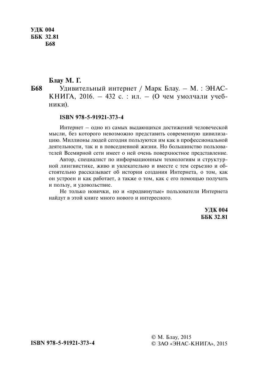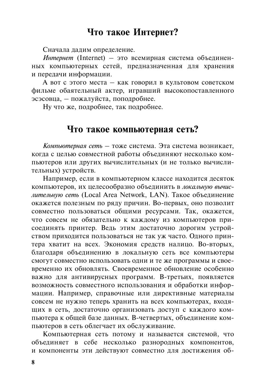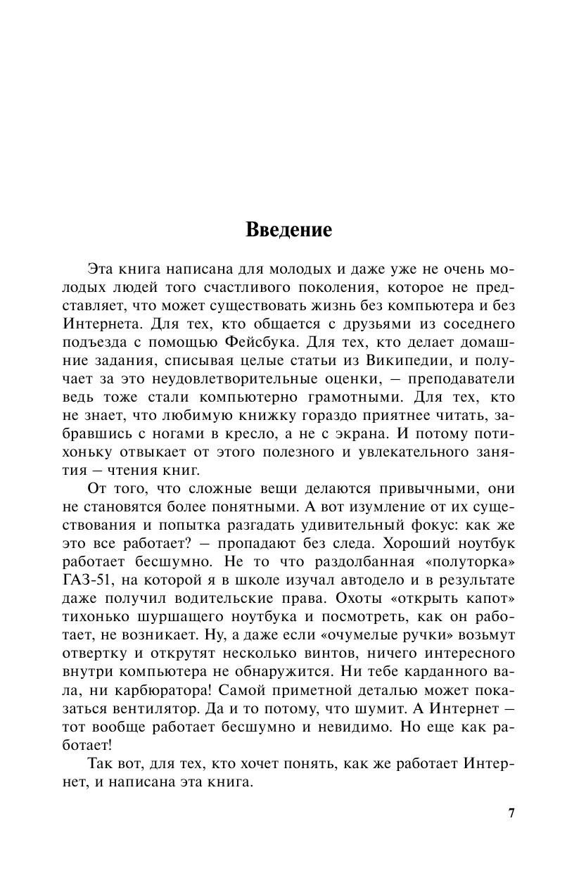 Интернет – одно из самых выдающихся достижений человеческой мысли, без которого невозможно представить современную цивилизацию. Миллионы людей сегодня пользуются им как в профессиональной деятельности, так и в повседневной жизни. Но большинство пользователей Всемирной сети имеет о ней очень поверхностное представление. Автор, специалист по информационным технологиям и структурной лингвистике, живо и увлекательно и вместе с тем серьезно и обстоятельно рассказывает об истории создания Интернета, о том, как он устроен и как работает, а также о том, как с его помощью получать и пользу, и удовольствие. Не только новички, но и «продвинутые» пользователи Интернета найдут в этой книге много нового и интересного.