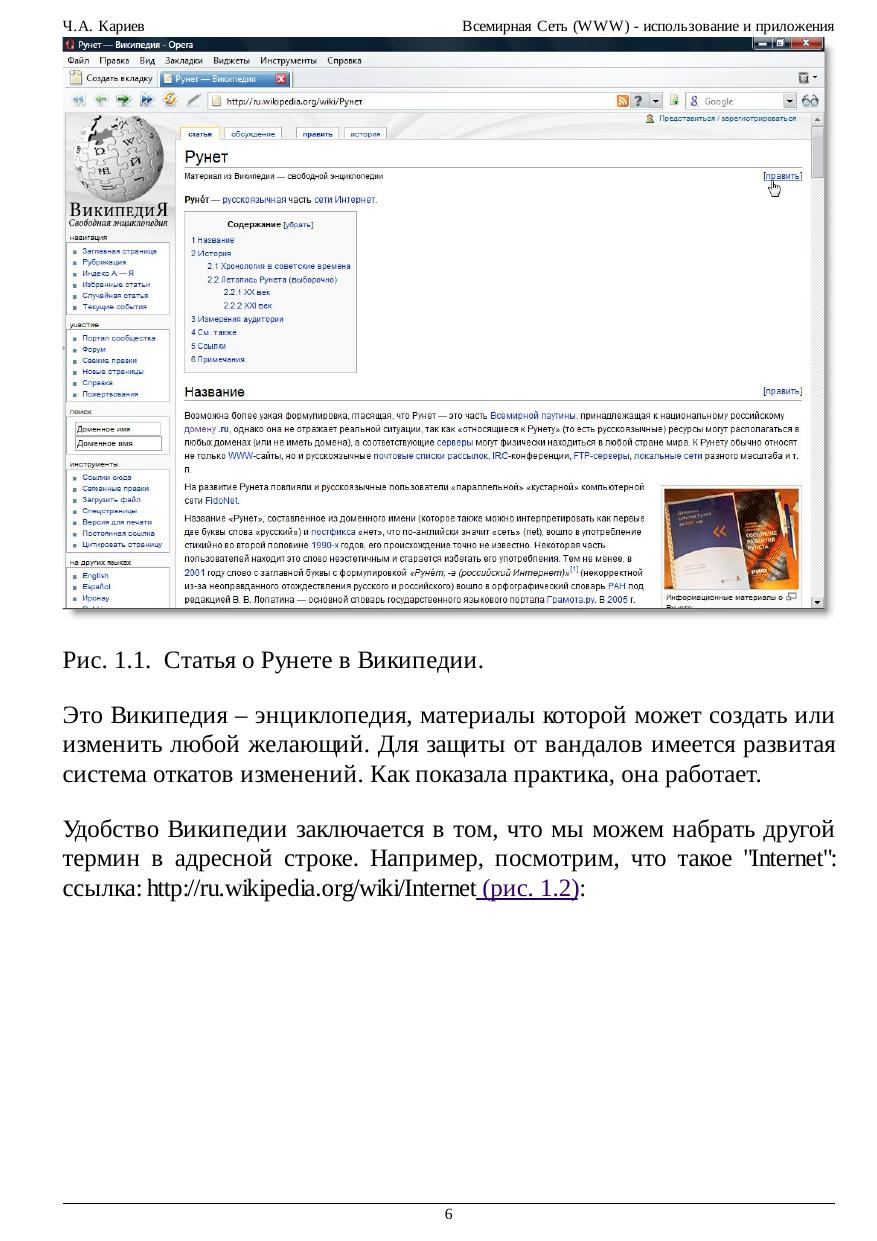 Всемирная Сеть (WWW) - использование и приложения
