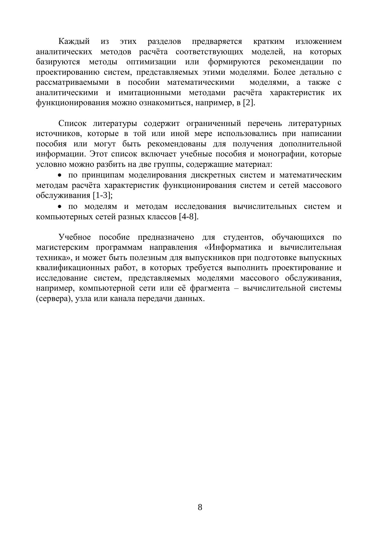 В пособии излагаются теоретические вопросы, связанные с математическими моделями технических систем с дискретным характером функционирования и применением аналитических методов расчёта характеристик функционирования систем для анализа эффективности различных вариантов структурно-функциональной организации исследуемых систем и решения задач проектирования с использованием методов оптимизации. Задачи оптимизации рассматриваются на примере относительно простых математических моделей, в качестве которых используются базовые и сетевые модели массового обслуживания. Учебное пособие предназначено для студентов, обучающихся по магистерским программам направления «Информатика и вычислительная техника», и может быть полезным для выпускников при подготовке выпускных квалификационных работ, в которых требуется выполнить проектирование и исследование систем, представляемых моделями массового обслуживания, например, компьютерной сети или её фрагмента – вычислительной системы (сервера), узла или канала передачи данных.