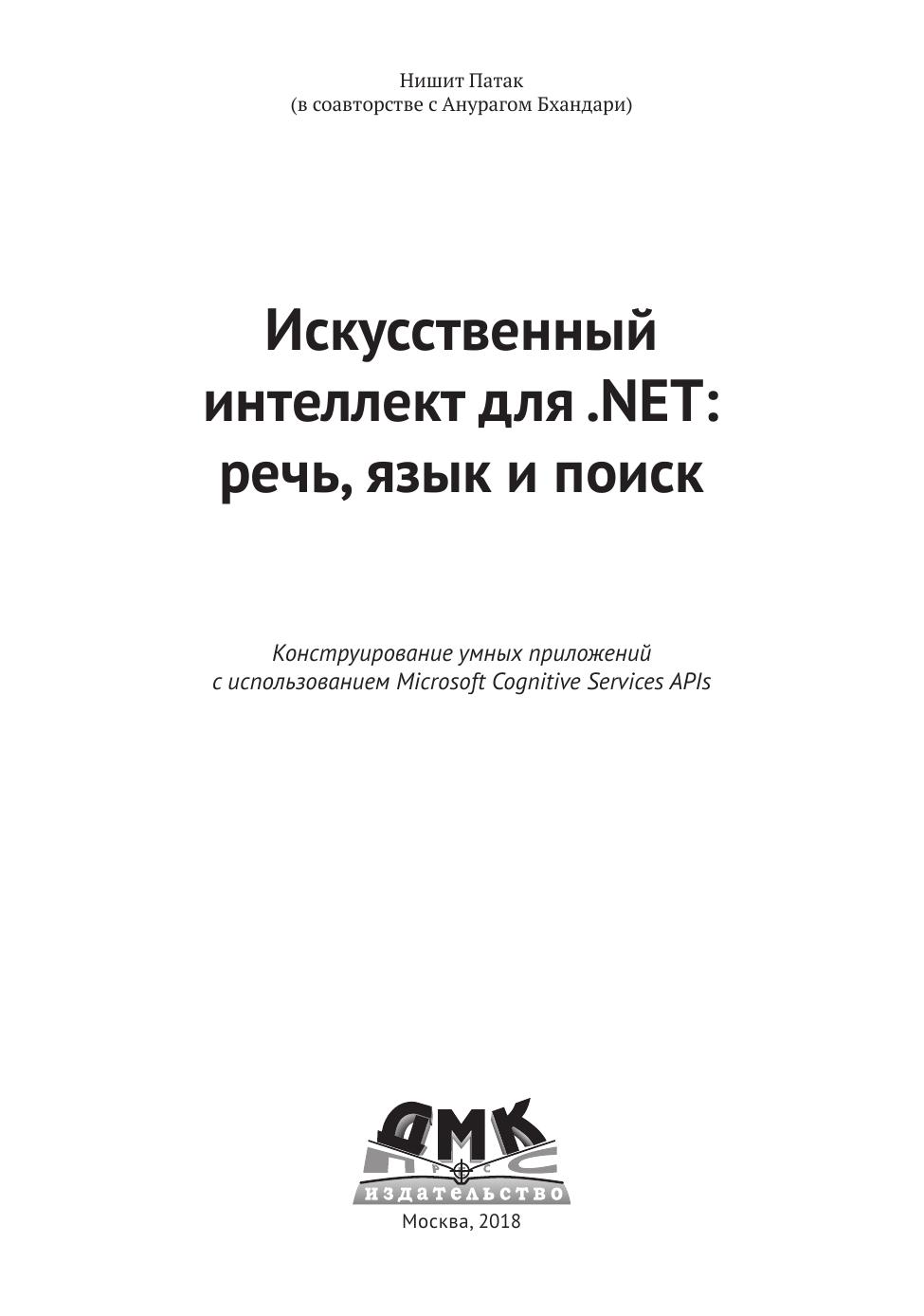 Искусственный интеллект для .NET: речь, язык и поиск. Конструирование умных приложений с использованием Microsoft Cognitive Services APIs