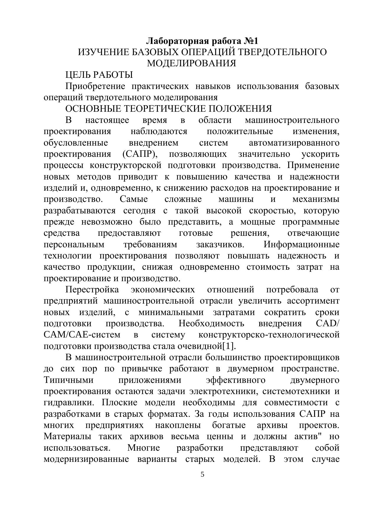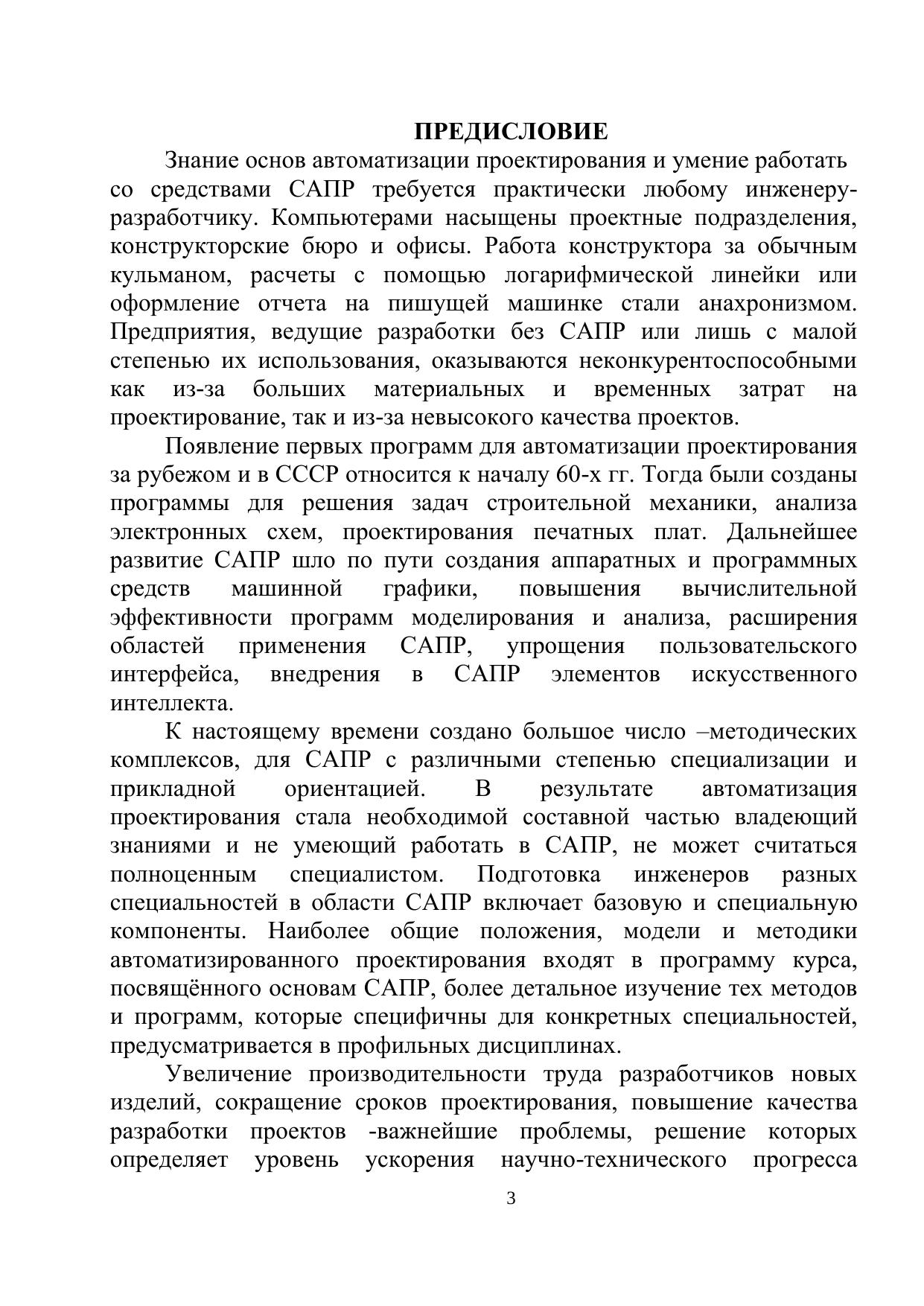 Содержатся девять лабораторных работ по дисциплине «Геометрическое моделирование в САПР». Лабораторный практикум предназначен для студентов очной формы обучения для студентов по направлению подготовки09.03.01 «Информатика и вычислительная техника» (квалификация–бакалавр), а также может быть полезен для студентов по направлению подготовки 09.03.02 «Информационные системы и технологии» (квалификация–бакалавр).