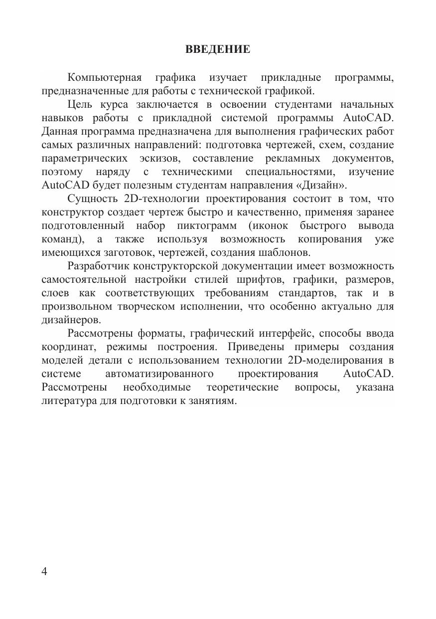 Основными задачами учебного пособия являются обучение начальным теоретическим знаниям компьютерной графики; ознакомление студентов с возможностями графического редактора AutoCAD; развитие творческого отношения к процессу обучения компьютерной графике.