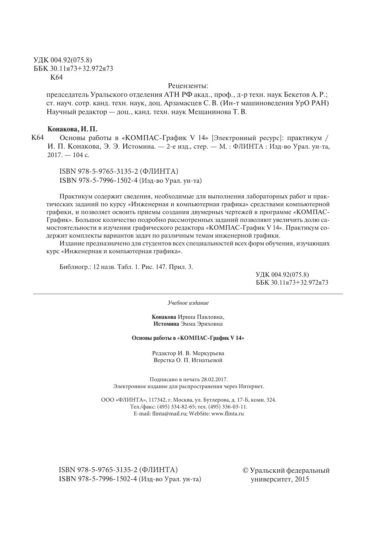 Практикум содержит сведения, необходимые для выполнения лабораторных работ и практических заданий по курсу «Инженерная и компьютерная графика» средствами компьютерной графики, и позволяет освоить приемы создания двумерных чертежей в программе «КОМПАС-График». Большое количество подробно рассмотренных заданий позволяют увеличить долю самостоятельности в изучении графического редактора «КОМПАС-График V 14». Практикум содержит комплекты вариантов задач по различным темам инженерной графики. Издание предназначено для студентов всех специальностей всех форм обучения, изучающих курс «Инженерная и компьютерная графика».
