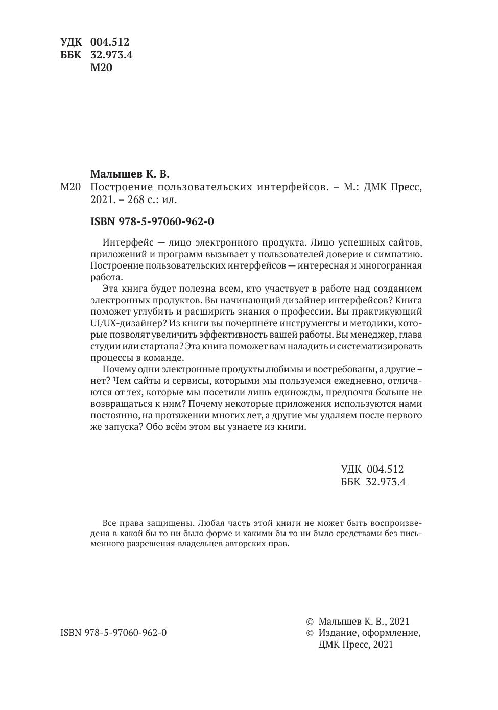 Эта книга будет полезна всем, кто участвует в работе над созданием электронных продуктов. Вы начинающий дизайнер интерфейсов? Книга поможет углубить и расширить знания о профессии. Вы практикующий UI/UX-дизайнер? Из книги вы почерпнёте инструменты и методики, которые позволят увеличить эффективность вашей работы. Вы менеджер, глава студии или стартапа? Эта книга поможет вам наладить и систематизировать процессы в команде.
