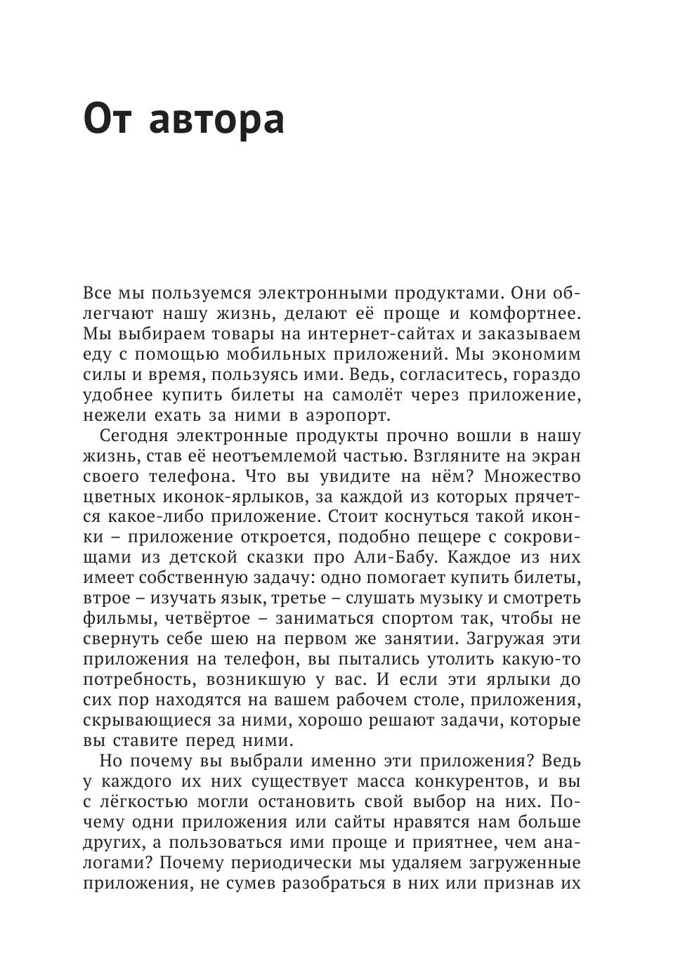 Почему одни электронные продукты любимы и востребованы, а другие — нет? Чем сайты и сервисы, которыми мы пользуемся ежедневно, отличаются от тех, которые мы посетили лишь единожды, предпочтя больше не возвращаться к ним? Почему некоторые приложения используются нами постоянно, на протяжении многих лет, а другие мы удаляем после первого же запуска? Обо всём этом вы узнаете из книги.