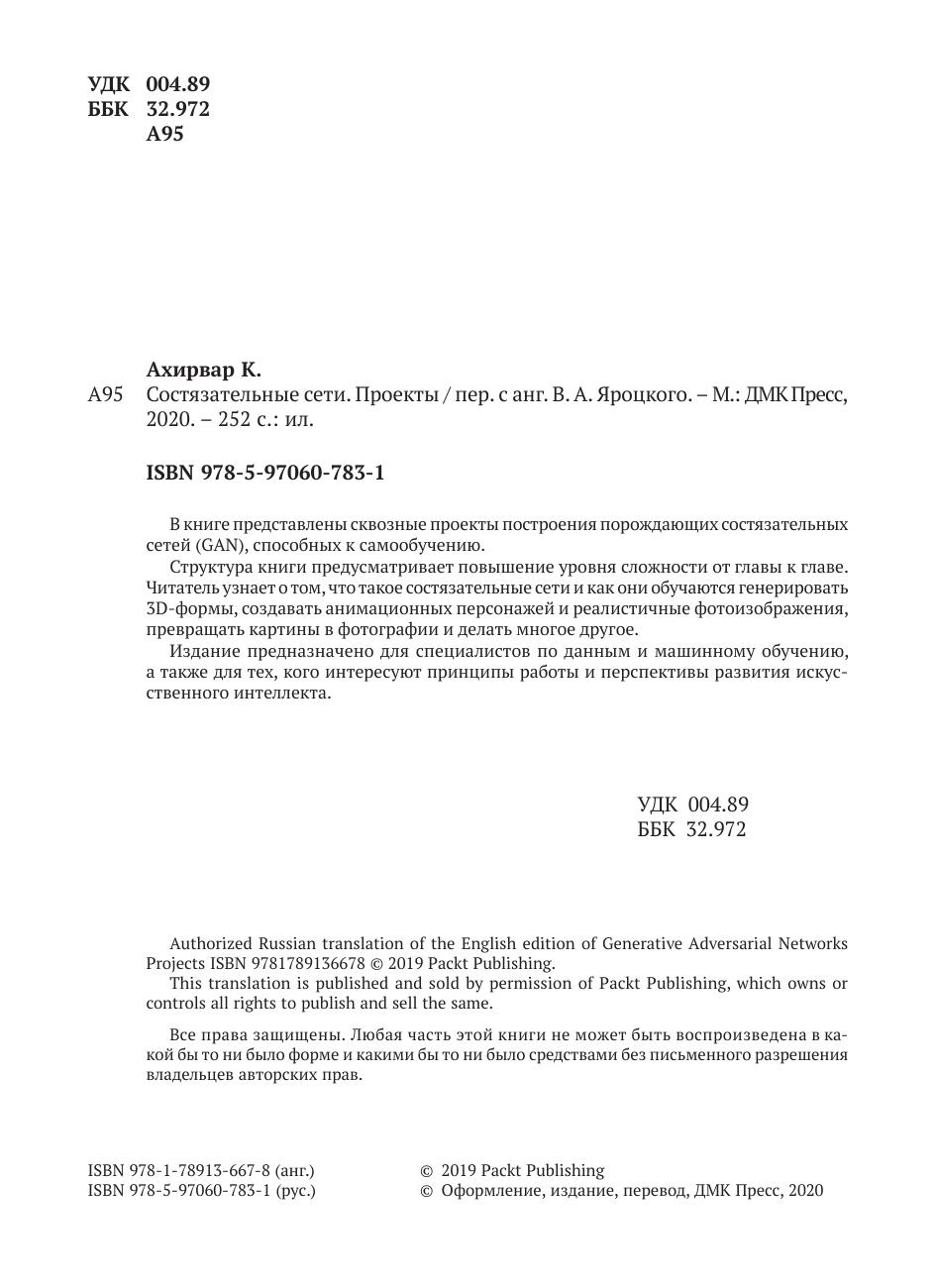 В книге представлены сквозные проекты построения порождающих состязательных сетей (GAN), способных к самообучению.