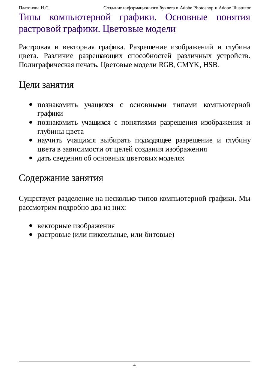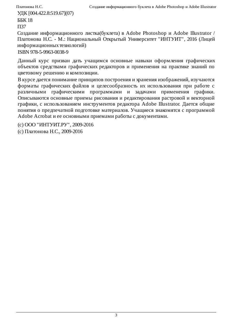 Данный курс призван дать учащимся основные навыки оформления графических объектов средствами графических редакторов и применения на практике знаний по цветовому решению и композиции. В курсе дается понимание принципов построения и хранения изображений, изучаются форматы графических файлов и целесообразность их использования при работе с различными графическими программами и задачами применения графики. Описываются основные приемы рисования и редактирования растровой и векторной графики, с использованием инструментов редактора Adobe Illustrator. Дается общие понятия о предпечатной подготовке материалов. Учащиеся знакомятся с программой Adobe Acrobat и ее основными приемами работы с документами.