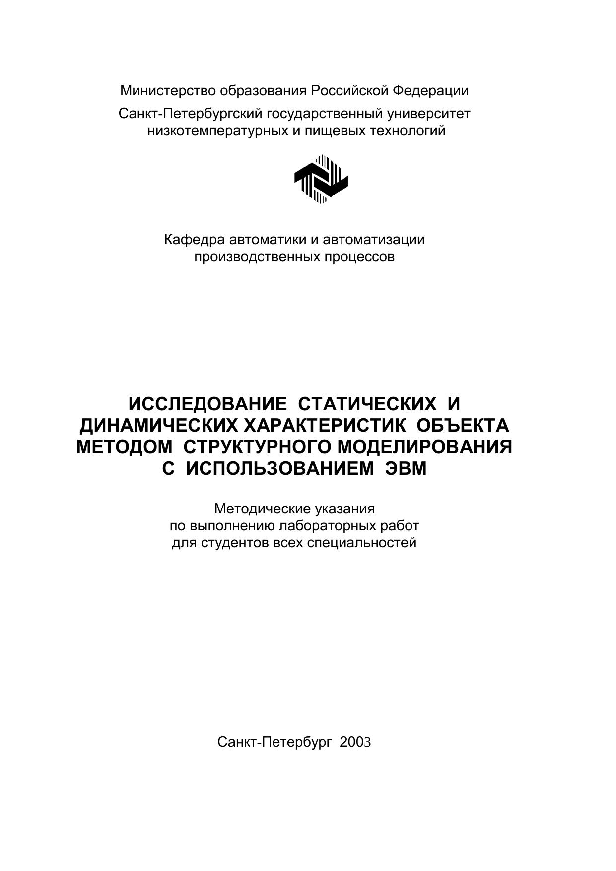 Исследование статических и динамических характеристик объекта методом структурного моделирования с использованием ЭВМ