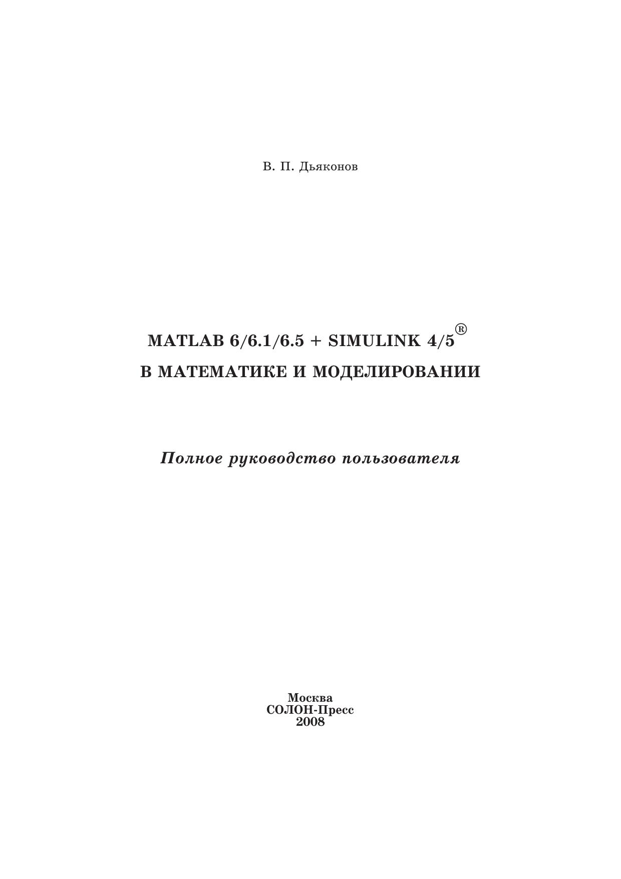 MATLAB 6/6.1/6.5 + Simulink 4/5 в математике и моделировании