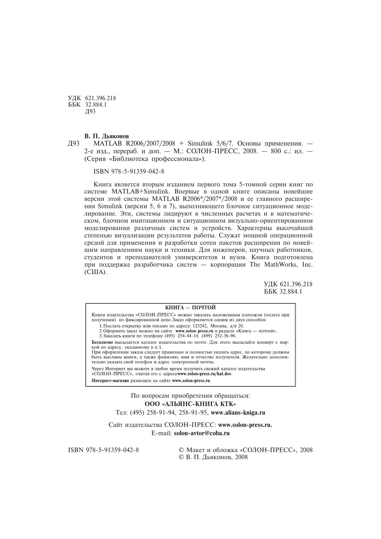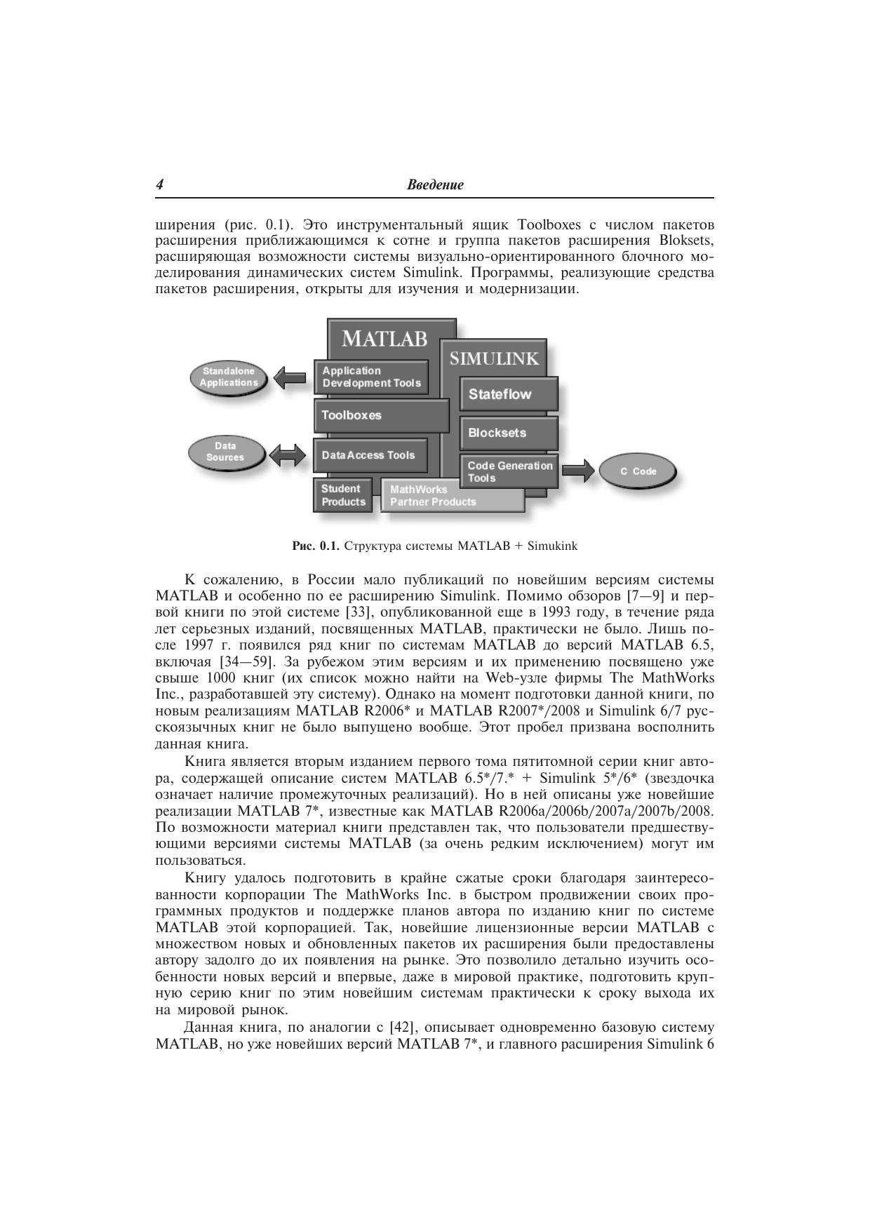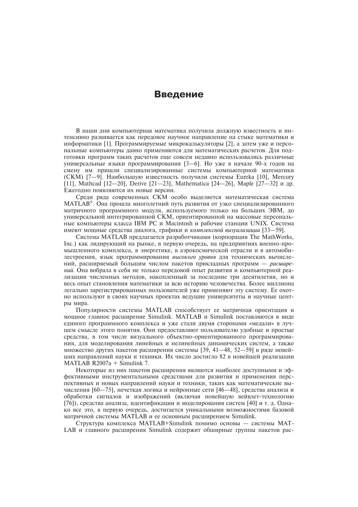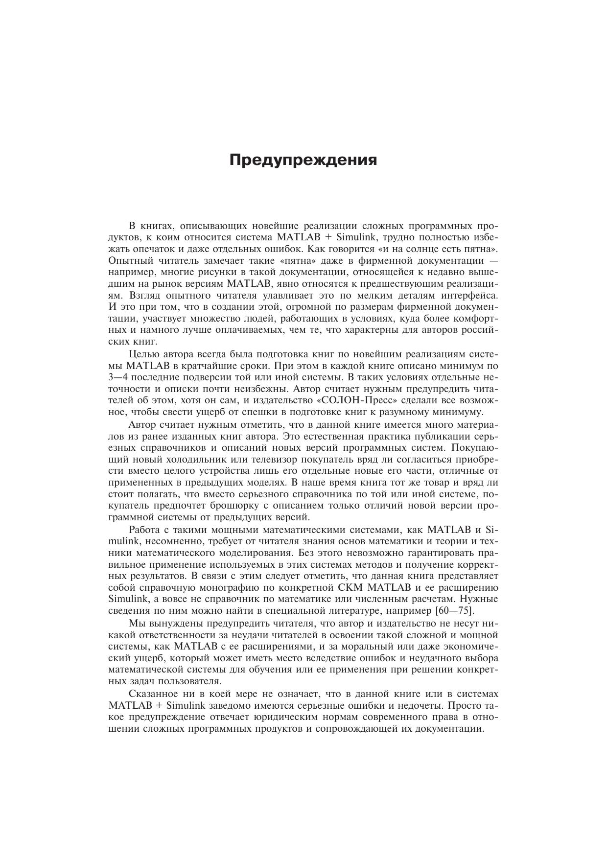 Книга является вторым изданием первого тома 5-томной серии книг по системе MATLAB+Simulink. Впервые в одной книге описаны новейшие версии этой системы MATLAB R2006*/2007*/2008 и ее главного расширения Simulink (версии 5, 6 и 7), выполняющего блочное ситуационное моделирование. Эти, системы лидируют в численных расчетах и в математическом, блочном имитационном и ситуационном визуально-ориентированном моделировании различных систем и устройств. Характерны высочайшей степенью визуализации результатов работы. Служат мощной операционной средой для применения и разработки сотен пакетов расширения по новейшим направлениям науки и техники. Для инженеров, научных работников, студентов и преподавателей университетов и вузов. Книга подготовлена при поддержке разработчика систем — корпорации The MathWorks, Inc. (США).