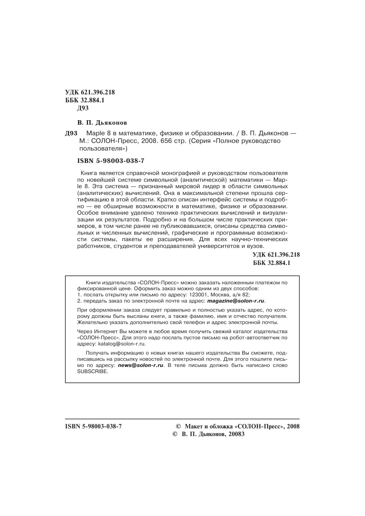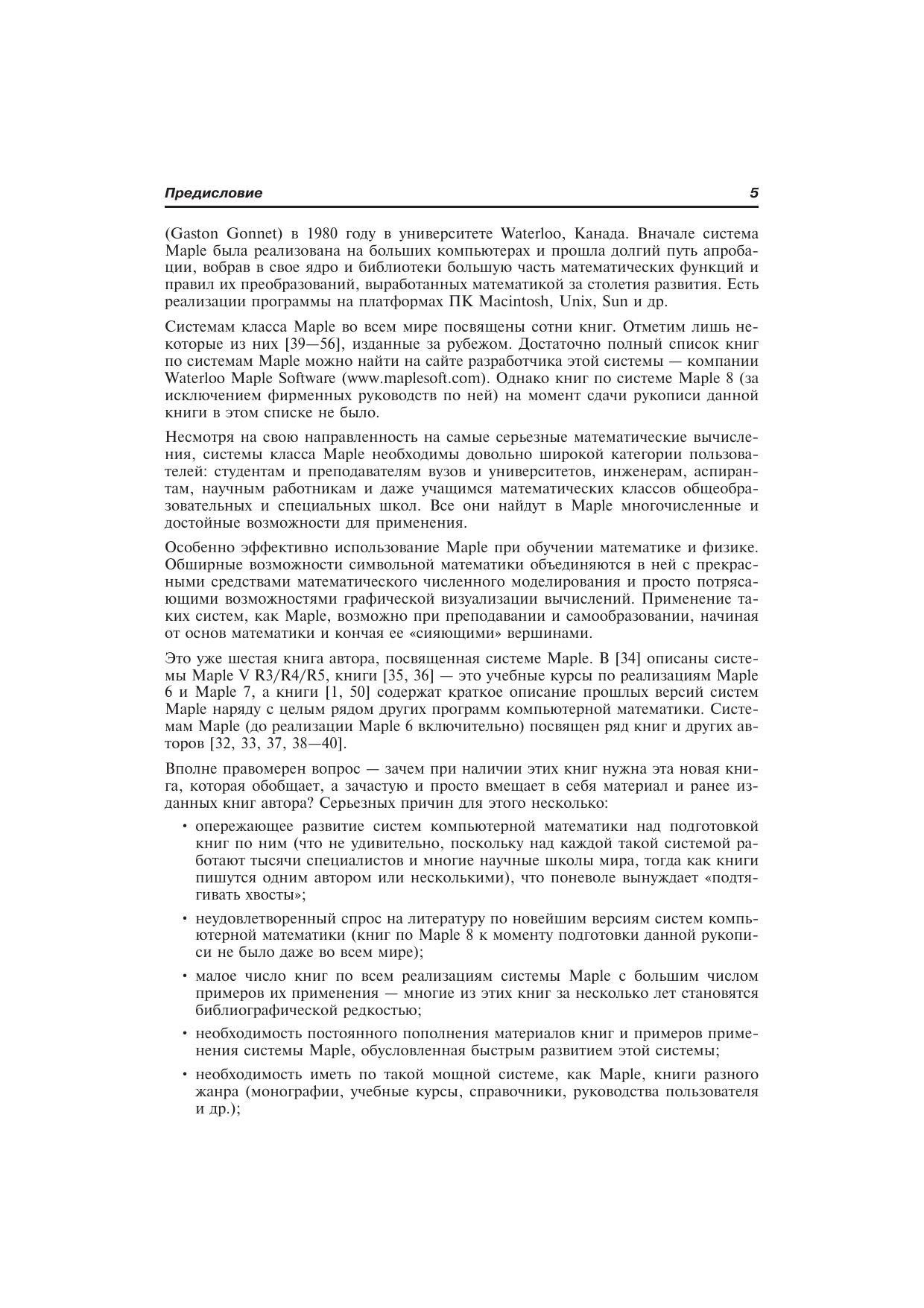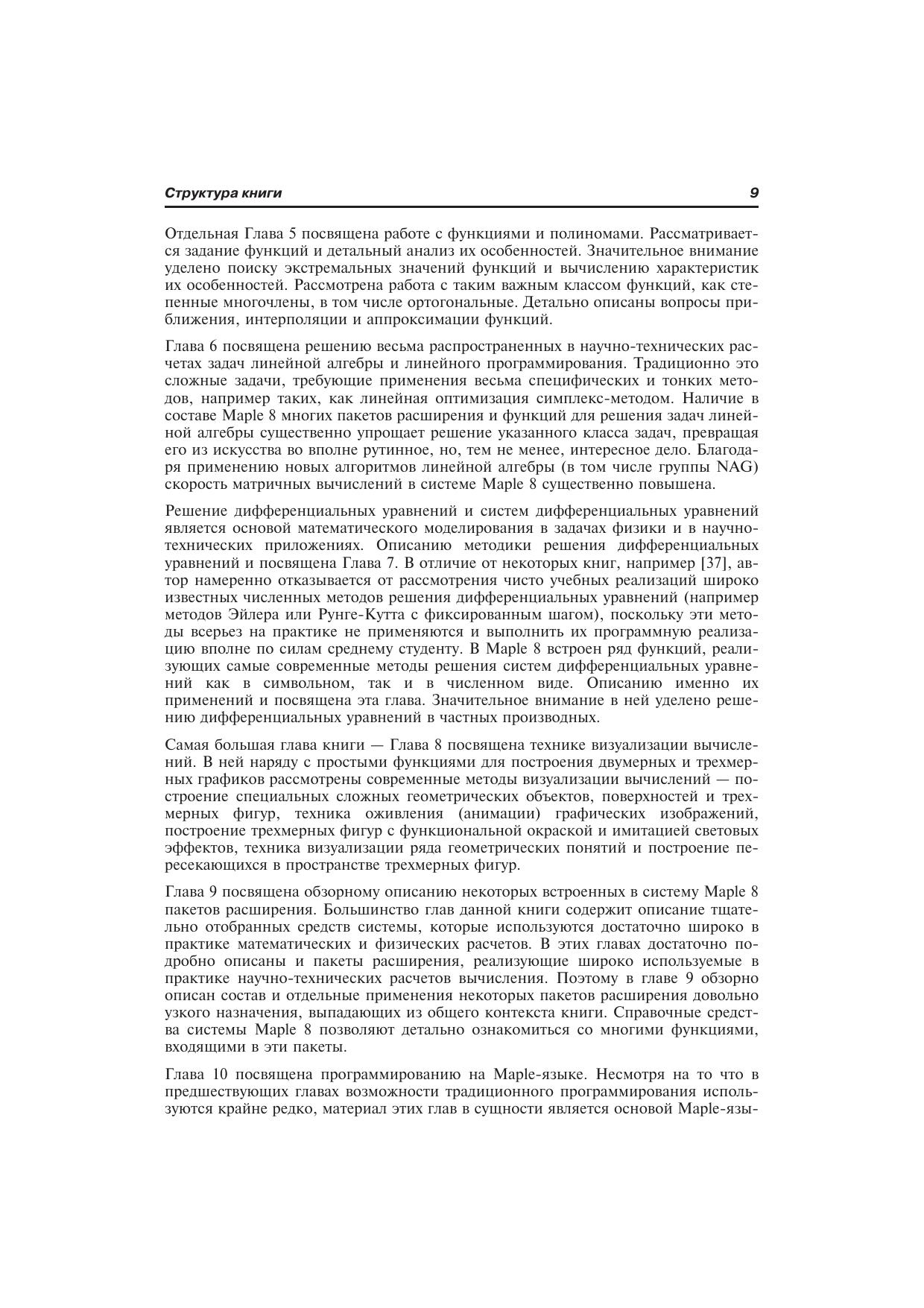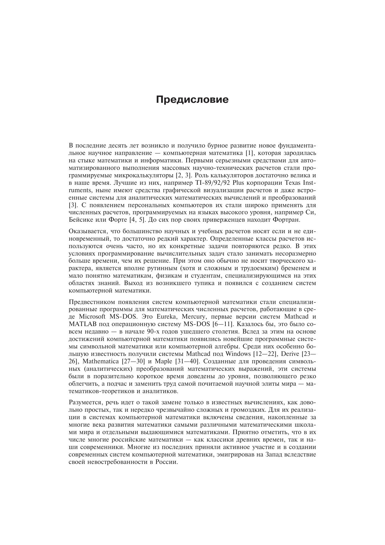 Книга является справочной монографией и руководством пользователя по новейшей системе символьной (аналитической) математики — Maple 8. Эта система — признанный мировой лидер в области символьных (аналитических) вычислений. Она в максимальной степени прошла сертификацию в этой области. Кратко описан интерфейс системы и подробно — ее обширные возможности в математике, физике и образовании. Особое внимание уделено технике практических вычислений и визуализации их результатов. Подробно и на большом числе практических примеров, в том числе ранее не публиковавшихся, описаны средства символьных и численных вычислений, графические и программные возможности системы, пакеты ее расширения. Для всех научно-технических работников, студентов и преподавателей университетов и вузов.