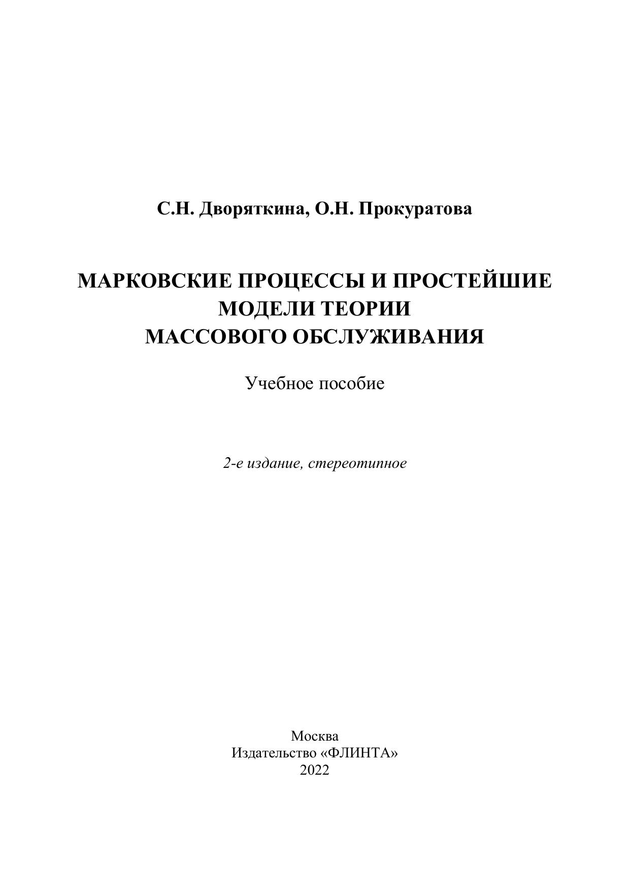 В учебном пособии рассмотрены основы современной теории марковских процессов – важного самостоятельного раздела теории случайных процессов, который используется при построении моделей функционирования систем массового обслуживания. В книге приводятся общие сведения по теории случайных процессов и теории массового обслуживания, более подробно изложен материал по теории марковских процессов с дискретным временем (цепи Маркова) и непрерывным временем. В пособии предложены задачи для самостоятельного решения и теоретические вопросы для проверки качества усвоения материала по каждой из тем.
