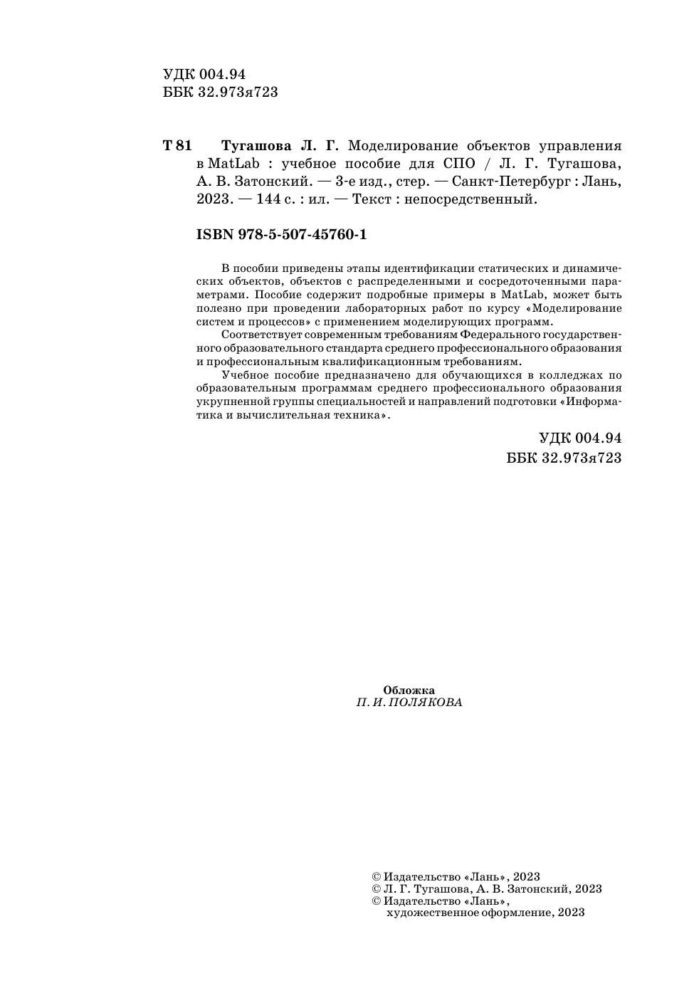 В пособии приведены этапы идентификации статических и динамических объектов, объектов с распределенными и сосредоточенными параметрами. Пособие содержит подробные примеры в Matlab, может быть полезно при проведении лабораторных работ по курсу «Моделирование систем и процессов» с применением моделирующих программ. Соответствует современным требованиям Федерального государственного образовательного стандарта среднего профессионального образования и профессиональным квалификационным требованиям. Учебное пособие предназначено для обучающихся в колледжах по образовательным программам среднего профессионального образования укрупненной группы специальностей и направлений подготовки «Информатика и вычислительная техника».