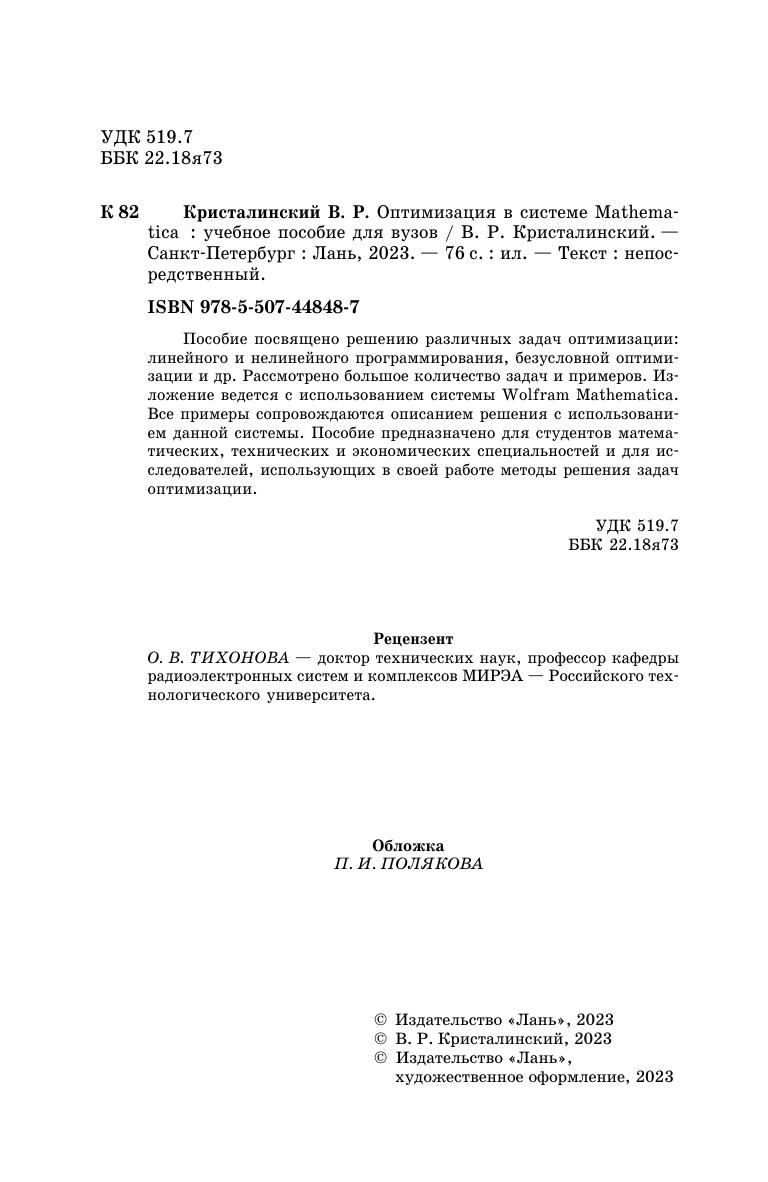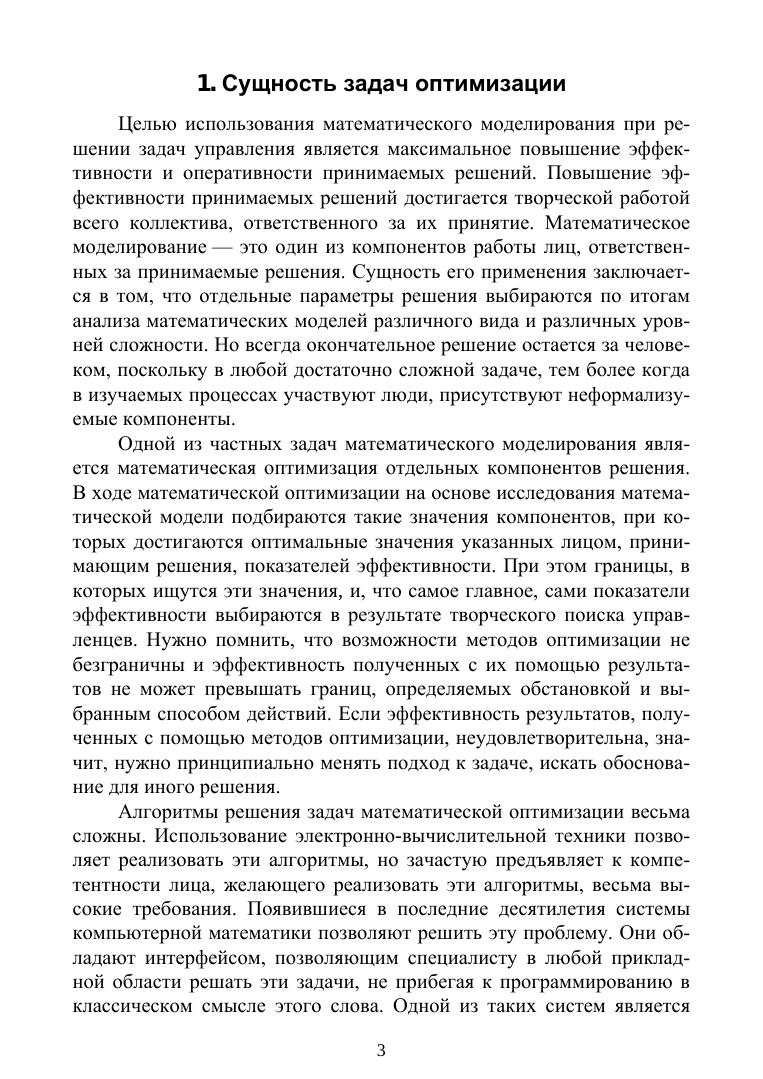 Пособие посвящено решению различных задач оптимизации: линейного и нелинейного программирования, безусловной оптимизации и др. Рассмотрено большое количество задач и примеров. Из ложение ведется с использованием системы Wolfram Mathematica. Все примеры сопровождаются описанием решения с использованием данной системы. Пособие предназначено для студентов математических, технических и экономических специальностей и для исследователей, использующих в своей работе методы решения задач оптимизации.