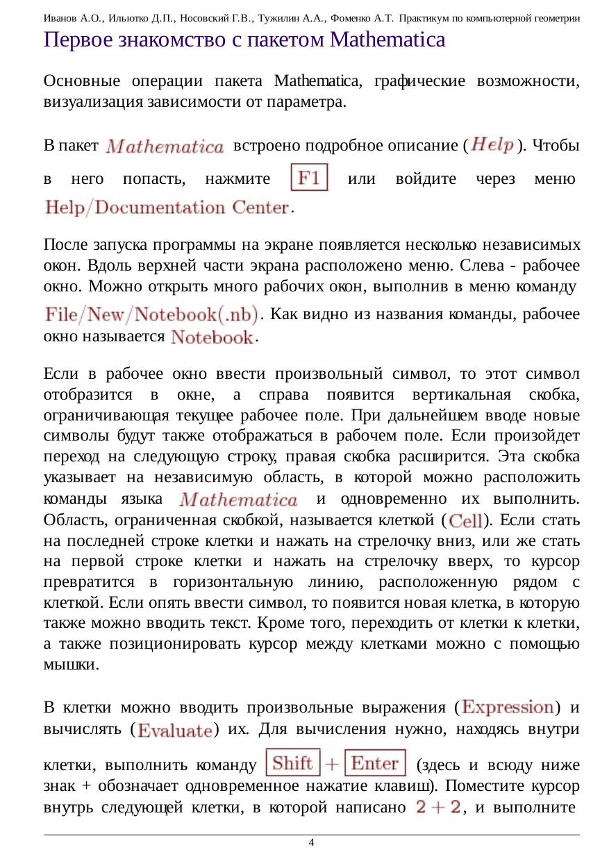 вычислительная геометрия, теория графов, дискретная оптимизация. Также обсуждаются возможности создания пользовательских пакетов на примере разработанного авторами учебного пакета, позволяющего легко и наглядно решать многие стандартные задачи по тензорному исчислению на гладких поверхностях.