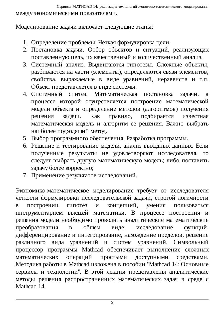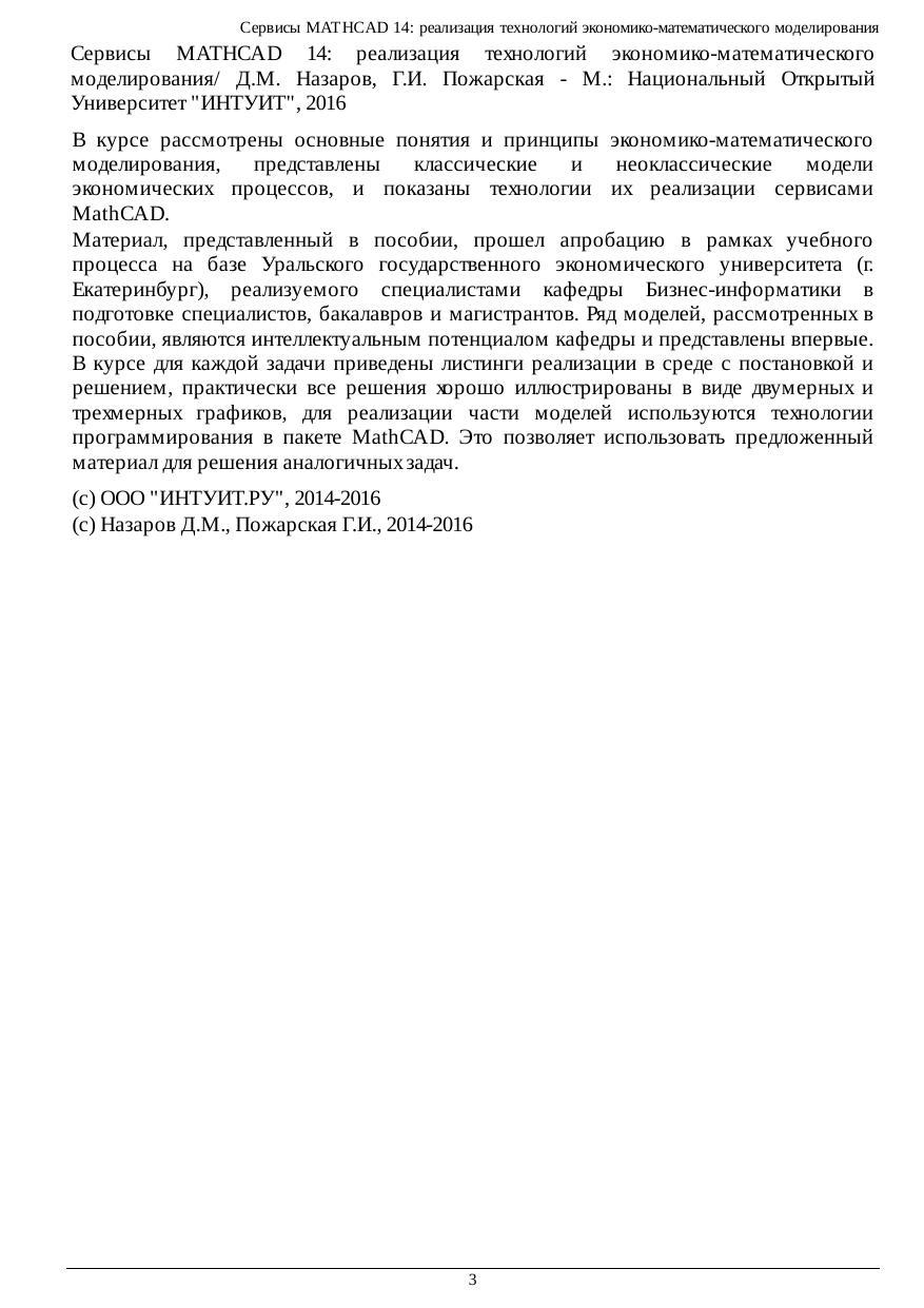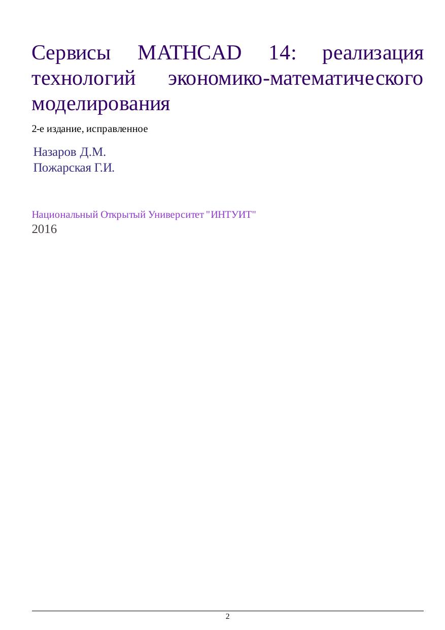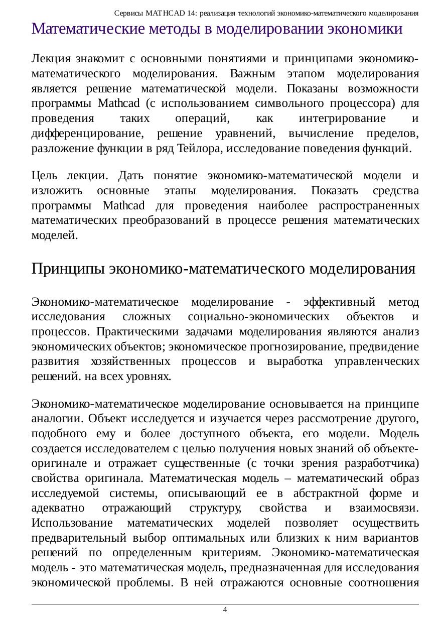 В курсе рассмотрены основные понятия и принципы экономико-математического моделирования, представлены классические и неоклассические модели экономических процессов, и показаны технологии их реализации сервисами MathCAD.