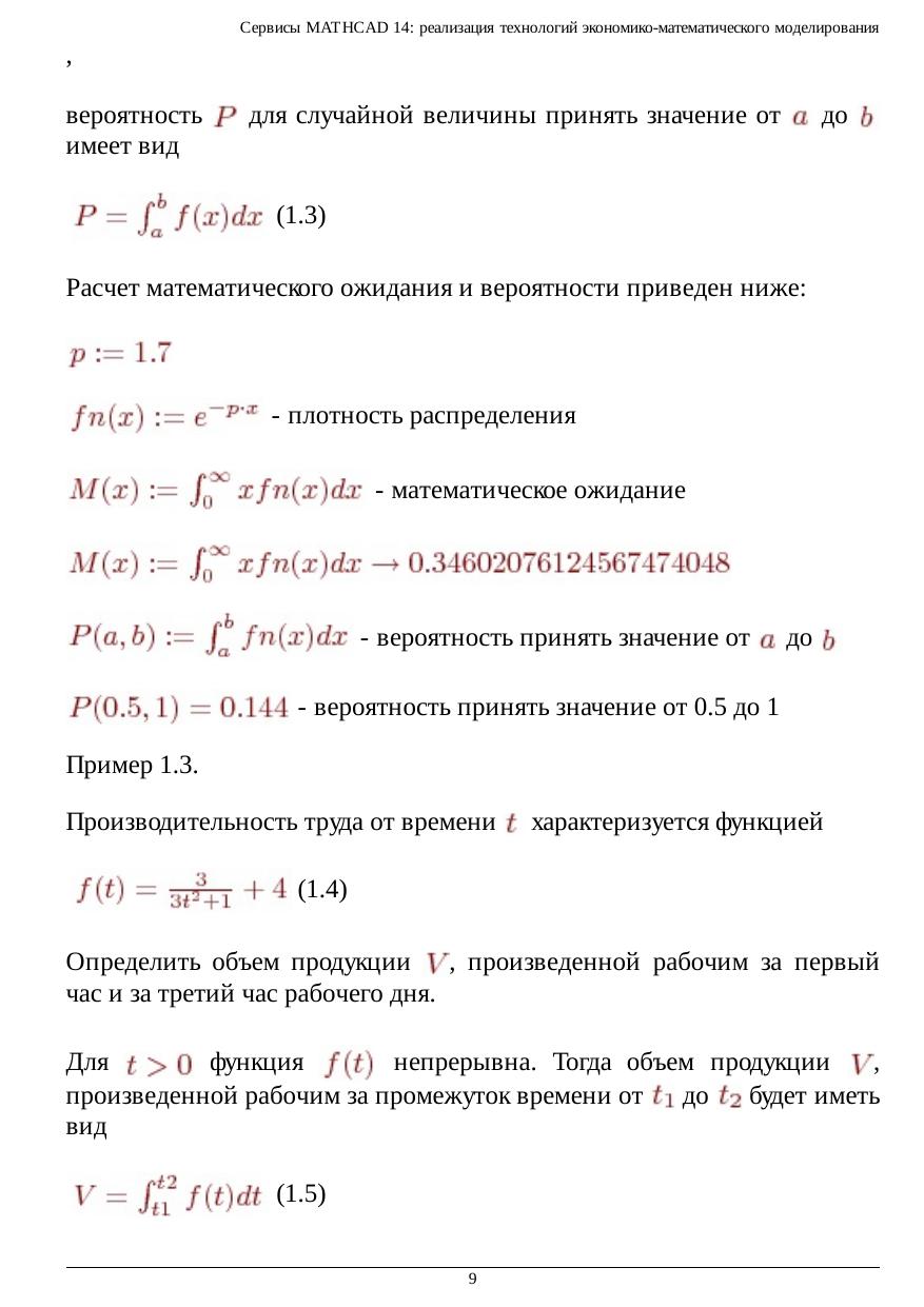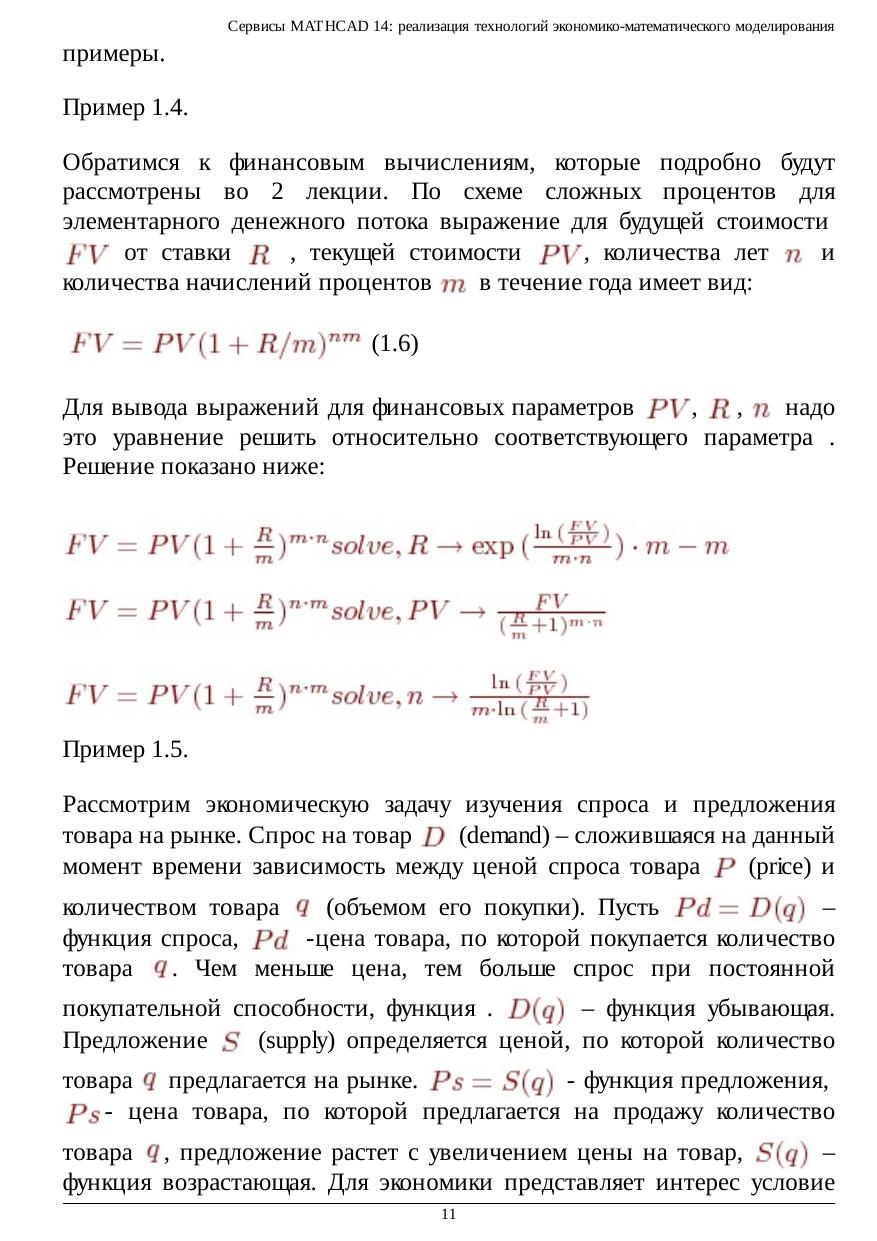 Сервисы MATHCAD 14: реализация технологий экономико-математического моделирования