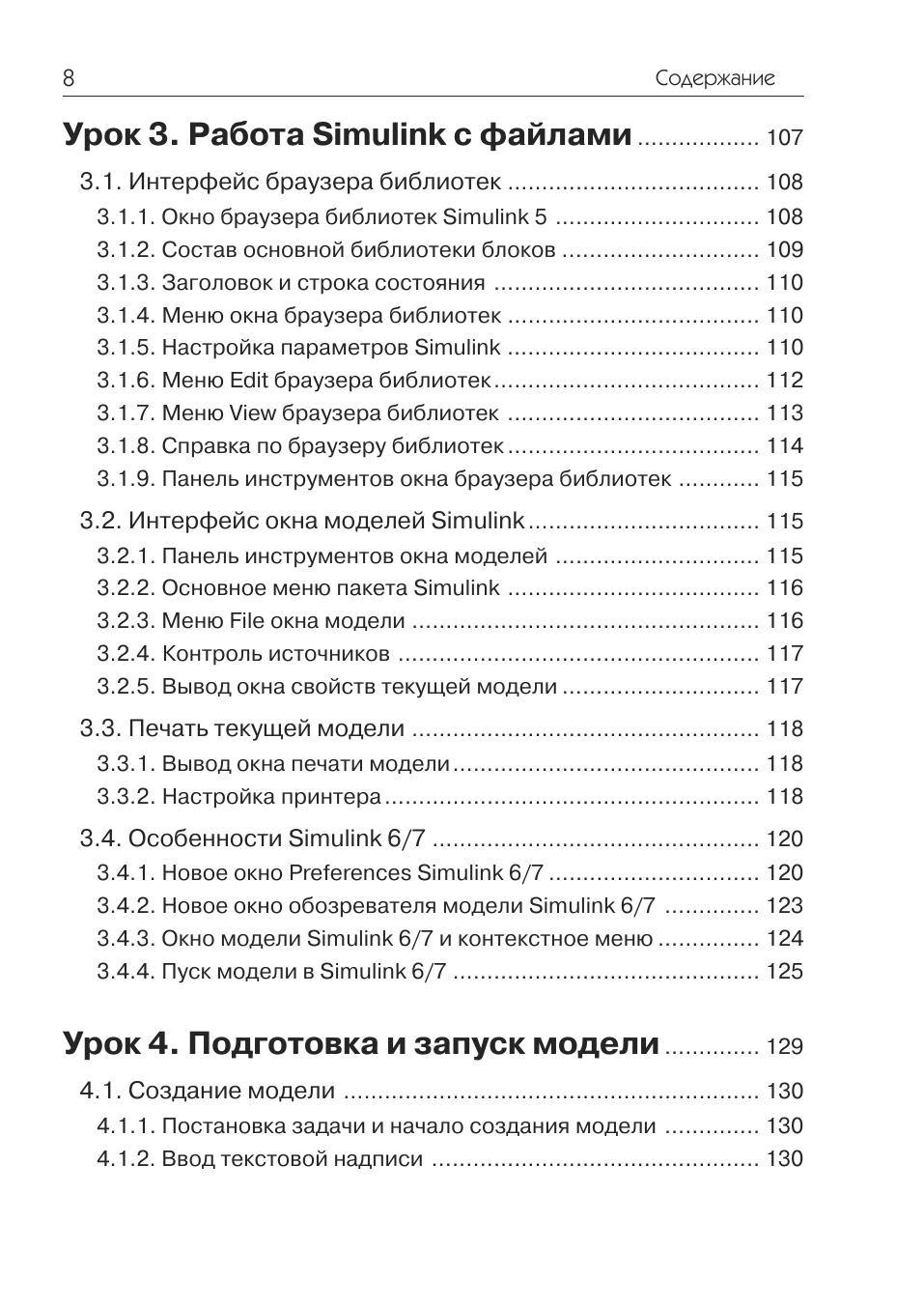 Самоучитель по новейшим реализациям пакета визуального блочного имитационного моделирования Simulink 5/6/7 матричной системы MATLAB R2006/2007. Подробно описаны библиотека блоков Simulink, методика подготовки диаграмм моделей, их редактирование, настройка и запуск на исполнение. Дано описание наиболее важных пакетов расширения Simulink инструментального ящика Blockset, в том числе SimPowerSystems, SimMechanics, Aerospace, Stateflow, Signal Processing, Telecommunication, Video and Image Processing и др. Отражены средства виртуальной реальности. Описаны сотни наглядных примеров применения этих средств. Издание предназначено для студентов, преподавателей и аспирантов вузов и университетов, инженеров и научных работников.