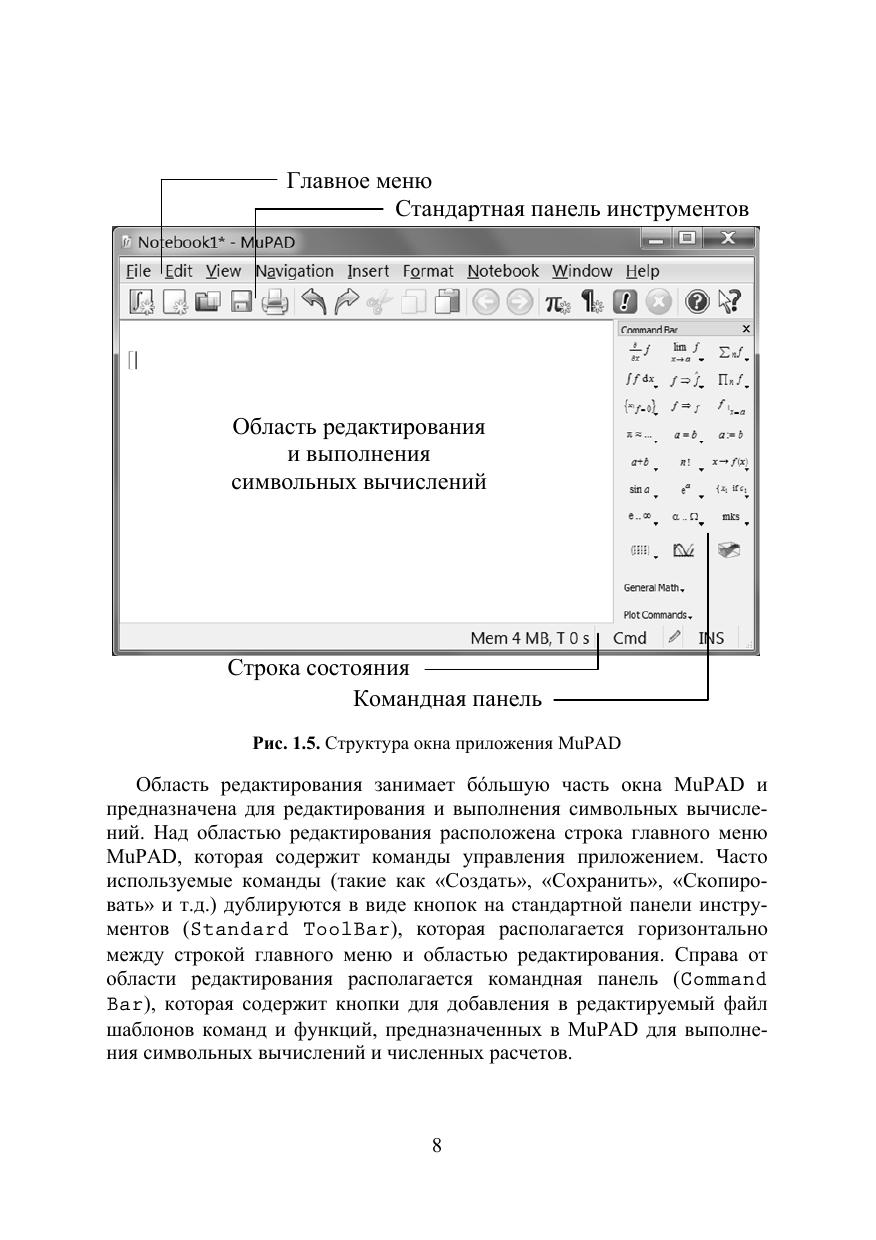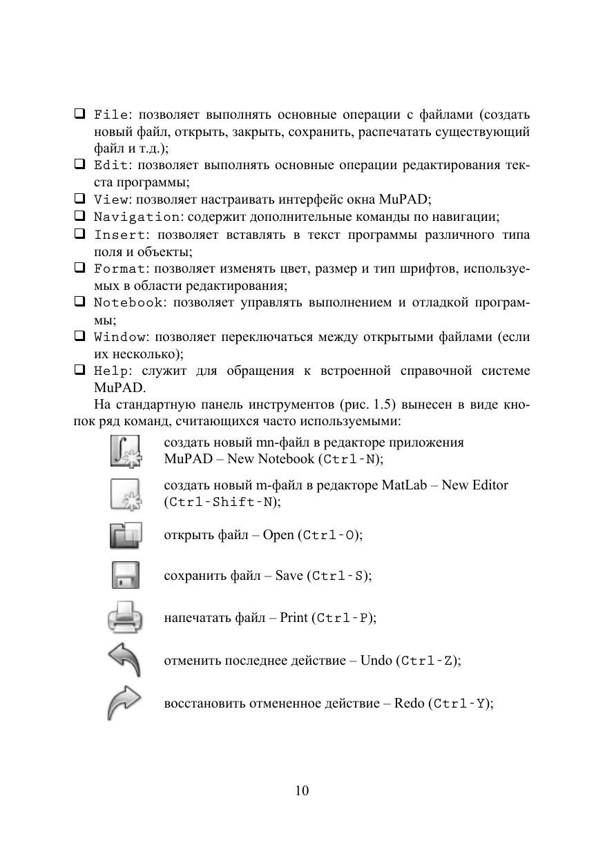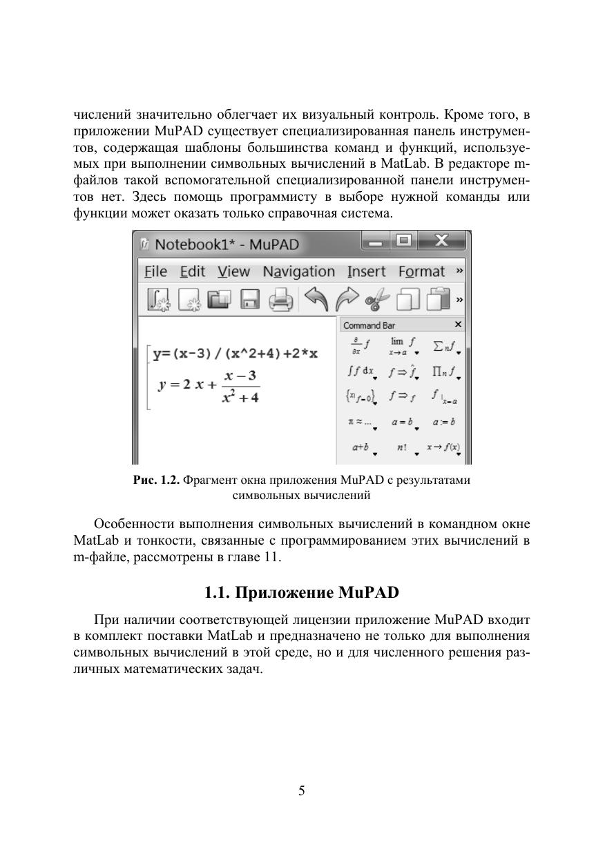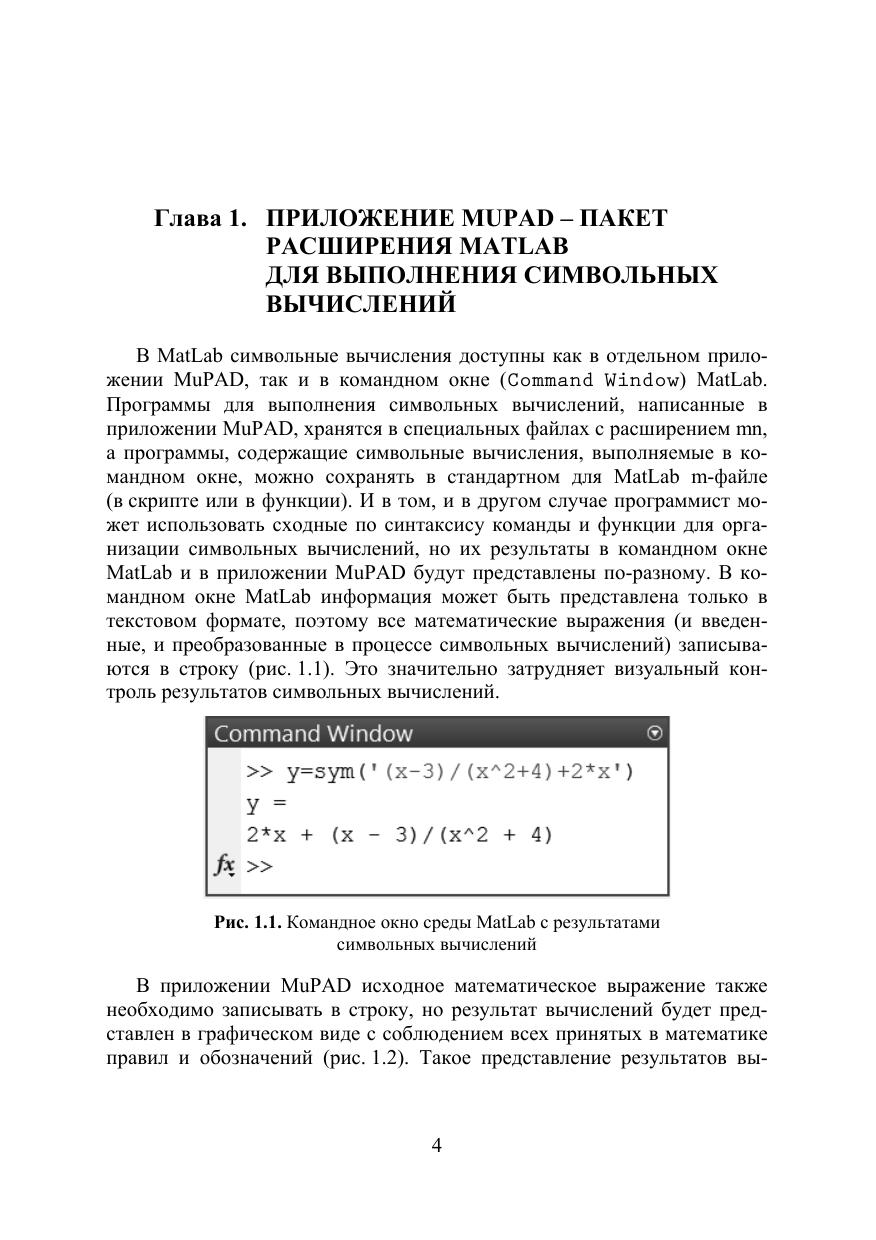 Описаны возможности ядра MatLab и интегрированных в MatLab пакетов MuPAD и Symbolic Math Toolbox для выполнения символьных вычислений на компьютере в процессе аналитического и численного решении задач, относящихся к таким разделам математики как алгебра, линейная алгебра, векторный анализ, математический анализ, комплексный анализ, дифференциальные уравнения, интерполяция и т. д. Уделено внимание способам сохранения, преобразования, использования и графического представления результатов символьных вычислений в MatLab. Изложенный материал иллюстрирован примерами и сопровождается заданиями для самостоятельного выполнения на компьютере. Для студентов, аспирантов физико-математических и технических специальностей, а также для преподавателей и специалистов классических и технических университетов, применяющих символьные вычисления в своей профессиональной деятельности.