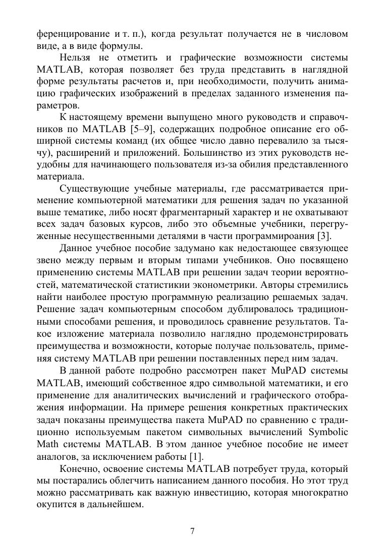 Данное пособие содержит основные сведения из теории вероятностей, математической статистики. Приводятся примеры решения задач по указанной тематике. Задачи решались традиционным способом и с помощью системы MATLAB. Даются рекомендации по использованию пакета символьной математики MuPAD и примеры его применения.