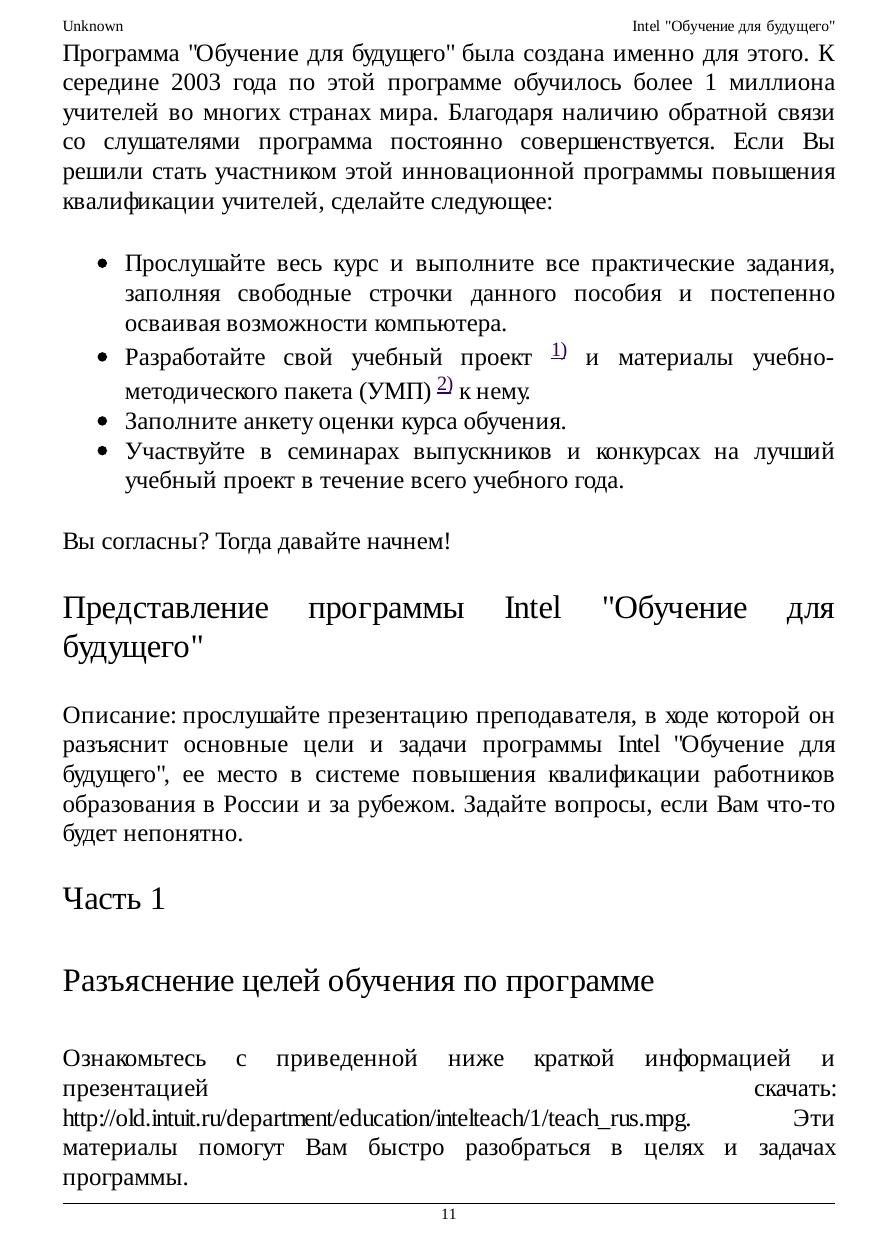 Intel "Обучение для будущего"
