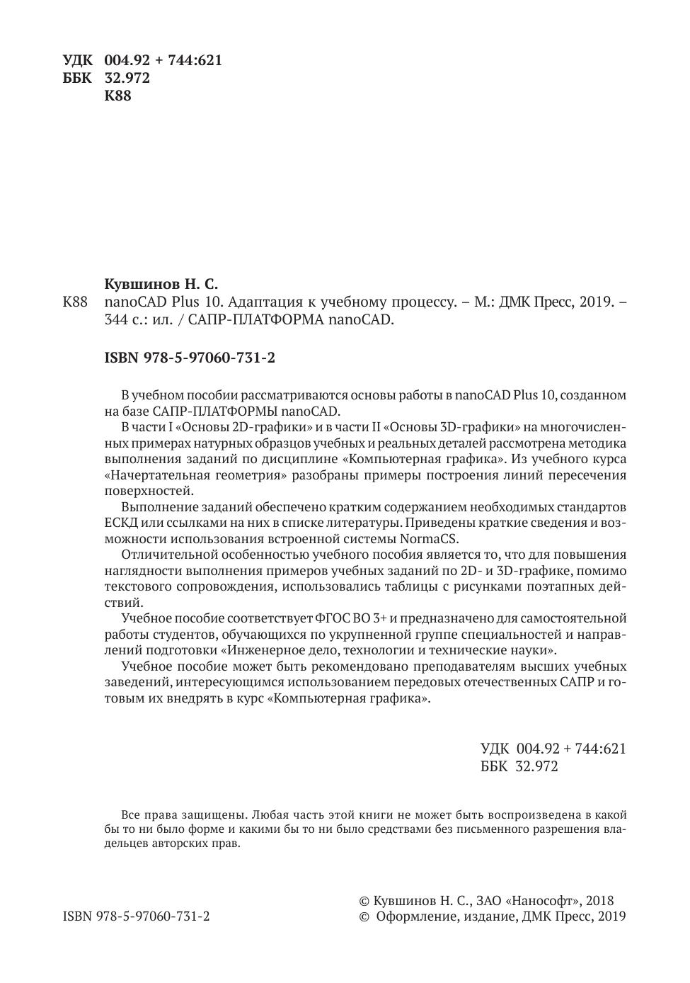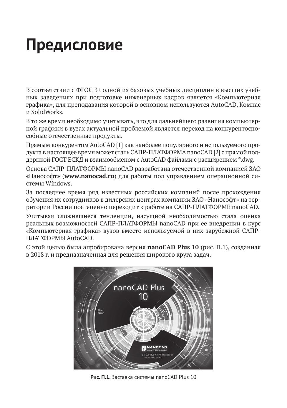 В учебном пособии рассматриваются основы работы в nanoCAD Plus 10, созданном на базе САПР-ПЛАТФОРМЫ nanoCAD.