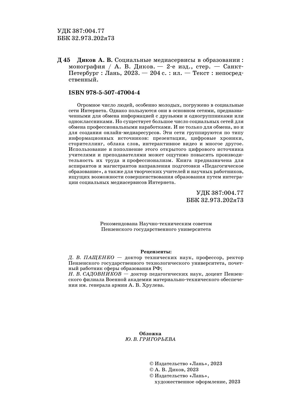 Огромное число людей, особенно молодых, погружено в социальные сети Интернета. Однако пользуются они в основном сетями, предназначенными для обмена информацией с друзьями и одногруппниками или одноклассниками. Но существует большое число социальных сетей для обмена профессиональными наработками. И не только для обмена, но и для создания онлайн-медиаресурсов. Эти сети группируются по типу информационных источников: презентации, цифровые хроники, сторителлинг, облака слов, интерактивное видео и многое другое. Использование и пополнение этого открытого цифрового источника учителями и преподавателями может ощутимо повысить производительность их труда и профессионализм. Книга предназначена для аспирантов и магистрантов направления подготовки «Педагогическое образование», а также для творческих учителей и научных работников, ищущих возможности совершенствования образования путем интеграции социальных медиасервисов Интернета.