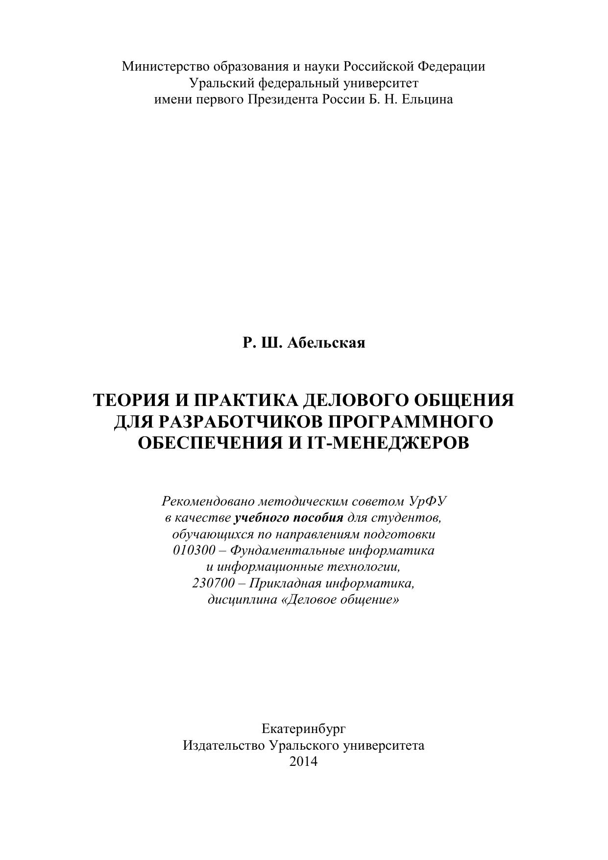 Теория и практика делового общения для разработчиков программного обеспечения и IT-менеджеров: учебное пособие