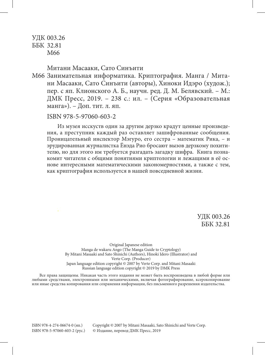 Книга познакомит читателя с общими понятиями криптологии и лежащими в её основе интересными математическими закономерностями, а также с тем, как криптография используется в нашей повседневной жизни.
