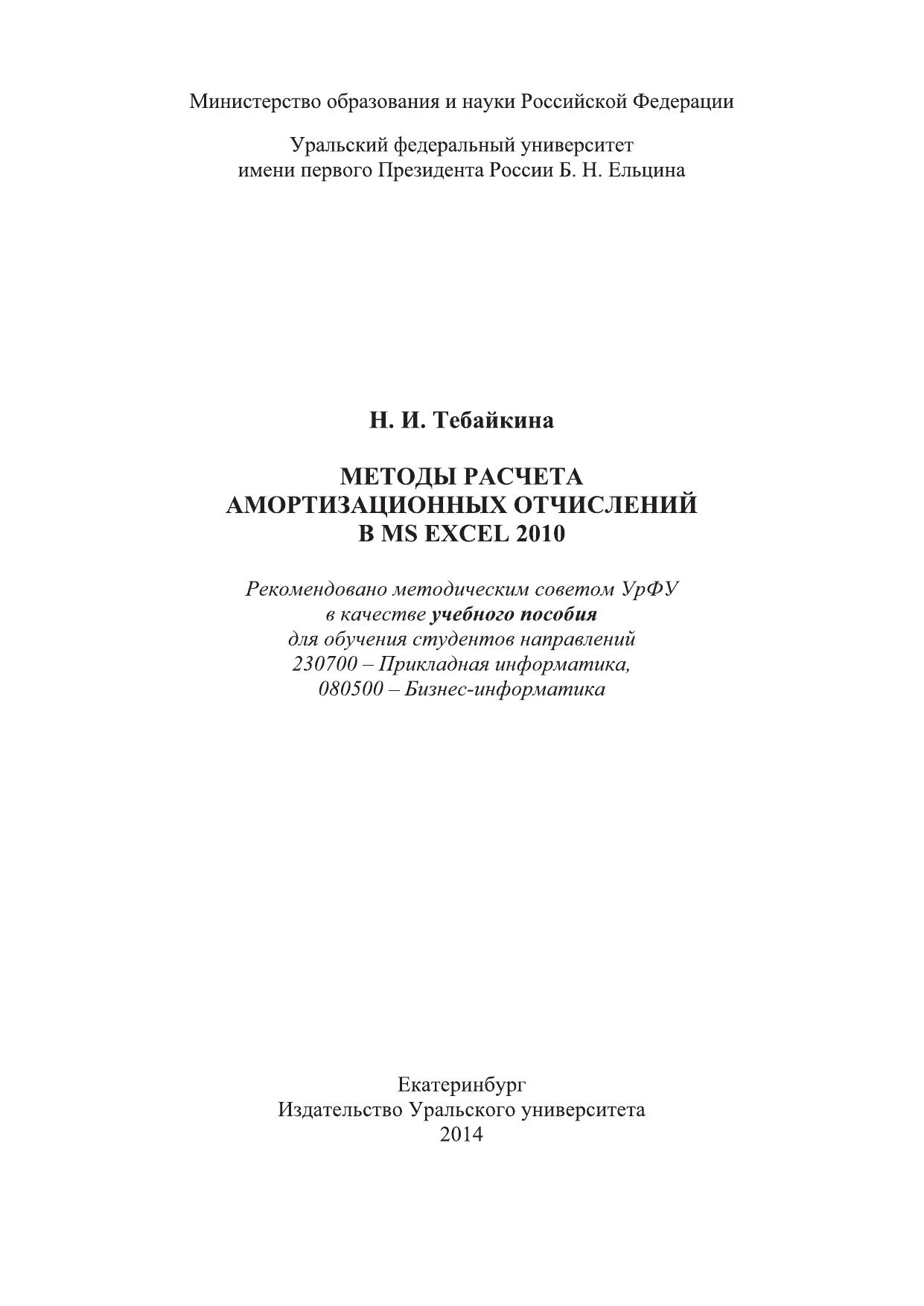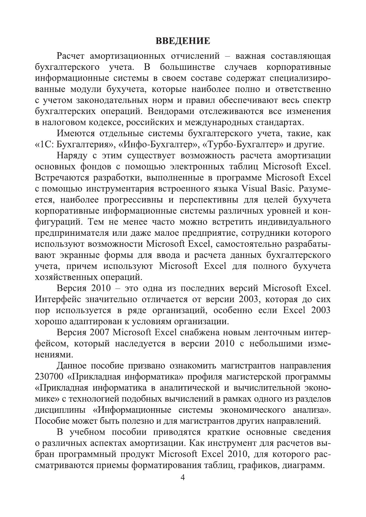 Учебное пособие содержит основные сведения о технологии расчета амортизационных отчислений, используемых методах и функциях MS Excel 2010, предназначено для обучения студентов направлений 230700 Прикладная информатика, 080500 -Бизнес-информатика.
