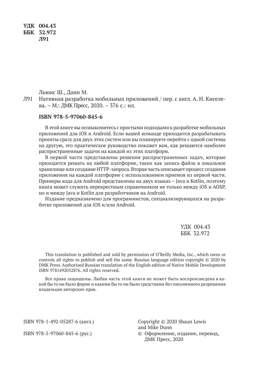 Издание предназначено для программистов, специализирующихся на разработке приложений для iOS и/или Android.