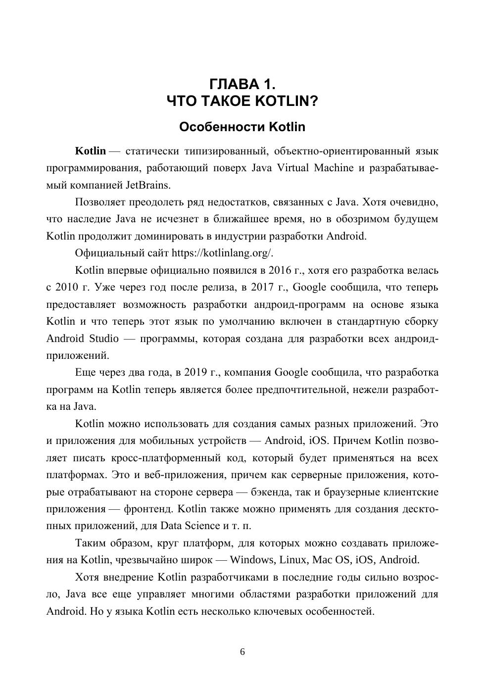 Язык Kotlin предлагает выразительный синтаксис, мощную и понятную систему типов, великолепную поддержку и бесшовную совместимость с существующим кодом на Java, богатый выбор библиотек и фреймворков. Kotlin может компилироваться в байт-кодJаvа, поэтому его можно использовать везде, где используется jаvа, включая Android. А благодаря эффективному компилятору и маленькой стандартной библиотеке Kotlin практически не привносит накладных расходов. Данная книга научит вас пользоваться языком Kotlin для создания высококачественных приложений. Написанная создателями языка — разработчиками в компании JetBrains, — эта книга охватывает такие темы, как создание предметно-ориентированных языков, функциональное программирование в JVM, совместное использование Java и Kotlin и др. Издание предназначено разработчикам, владеющим языком Java и желающим познакомиться и начать эффективно работать с Kotlin.