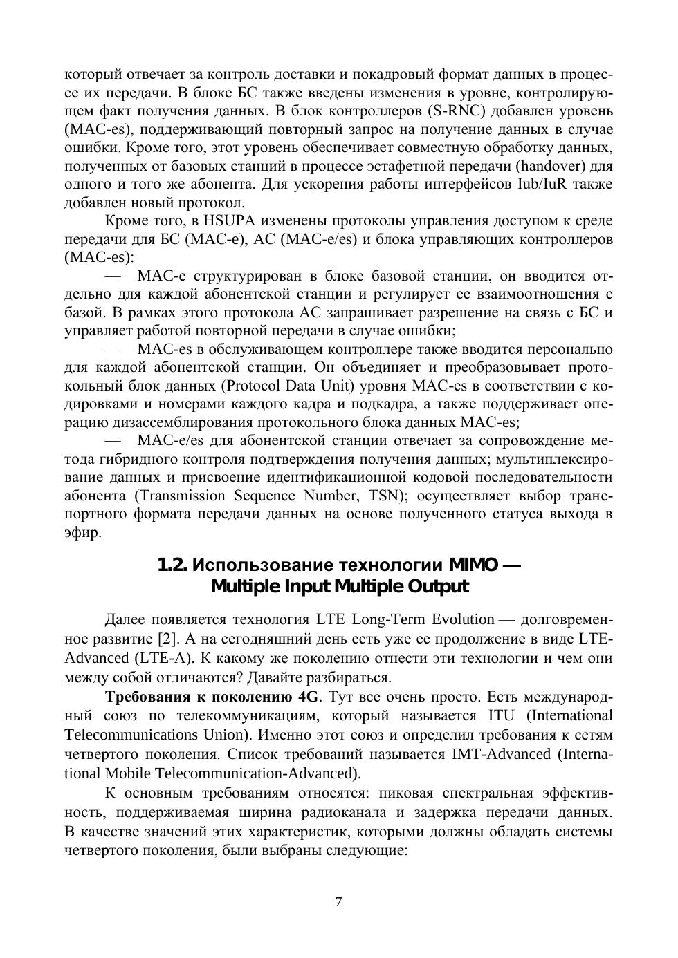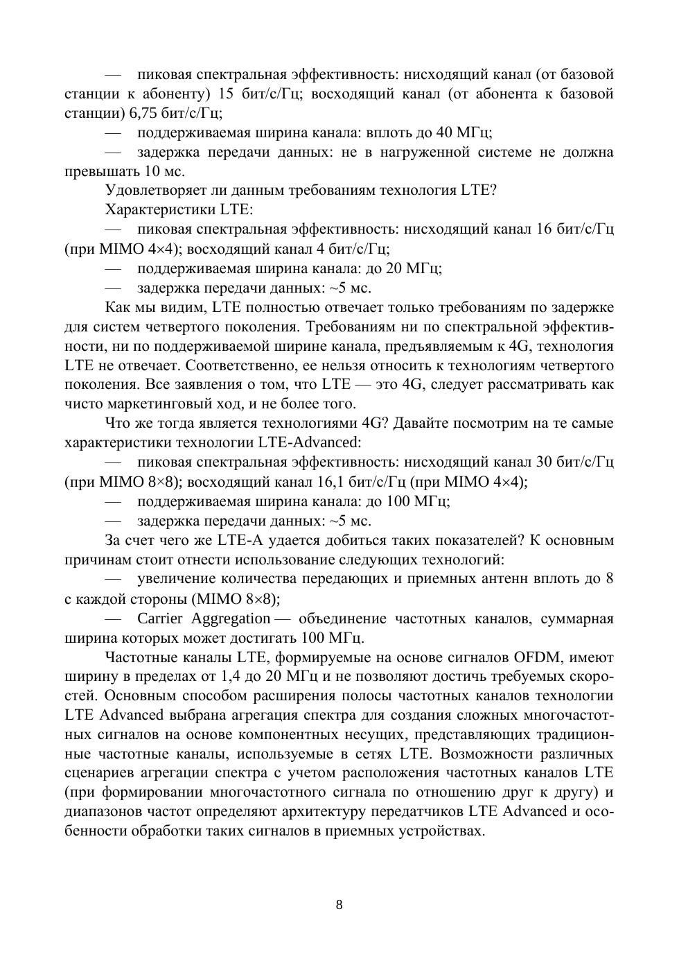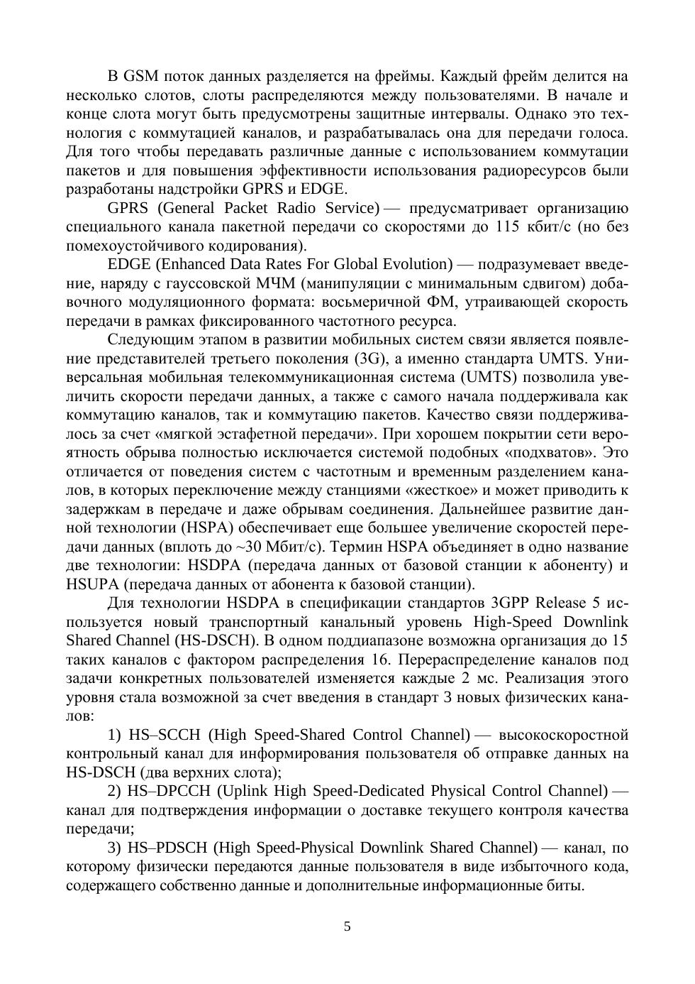 Учебное пособие представляет собой раздел дисциплины «Системы и сети передачи данных», читаемой для студентов, обучающихся по специальности «Информационная безопасность телекоммуникационных систем». В учебное пособие включены теоретические сведения, практические задачи и упражнения, в которых рассматривается эволюция развития мобильных систем связи и основные технологии цифровой связи поколения 5G. Рассмотрены методы пространственного уплотнения и мультиплексирования с ортогональным и неортогональным частотным разделением каналов, методы сверхразрешения сигналов и реализация технологии формирования луча в практике сотовых сетей связи. Рассмотрены: особенности передачи информации и современные технологии обработки цифровых, гидроакустических сигналов в подводной среде, принципы осуществления систем связи с использованием ИСЗ и тропосферных линий связи. Учебное пособие предназначено для студентов гидрометеорологического университета и может быть полезным для всех желающих ознакомиться с основами теории и принципов реализации современных мобильных и перспективных систем связи.