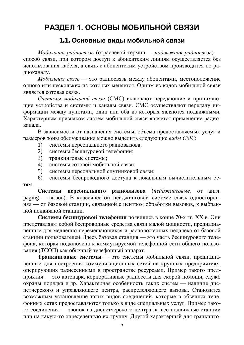 В учебном пособии приводятся базовые определения и информация об основных видах мобильной связи, понятия сотовой связи, радиосигнала и его характеристик, частотно-территориального планирования, рассматриваются оборудование систем мобильной связи поколения 2G-4G, проблемы передачи цифрового сигнала и способы защиты от помех, алгоритмы преобразования и передачи радиосигналов. Пособие предназначено для теоретической подготовки студентов ИТ-специальностей по курсу «Системы мобильной связи».