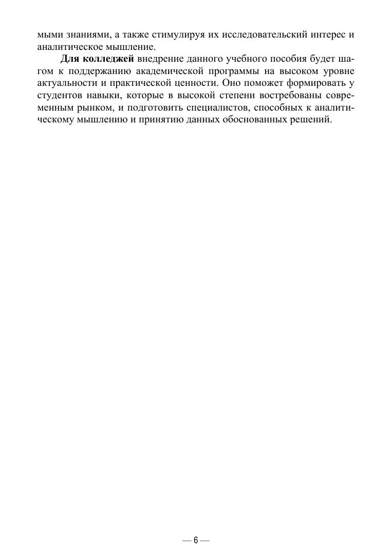 Это пособие не только предоставляет теоретическую основу анализа данных, но и акцентирует внимание на том, как эти знания могут быть применены в разнообразных отраслях и сферах деятельности. Студенты и преподаватели обнаружат взаимосвязь между традиционными методами анализа данных и современными подходами, основанными на машинном обучении и больших данных, через широкий спектр практических примеров и кейс-стади. Книга адресована студентам, обучающимся в колледжах по образовательным программам среднего профессионального образования. Соответствует современным требованиям Федерального государственного образовательного стандарта среднего профессионального образования и профессиональным квалификационным требованиям.