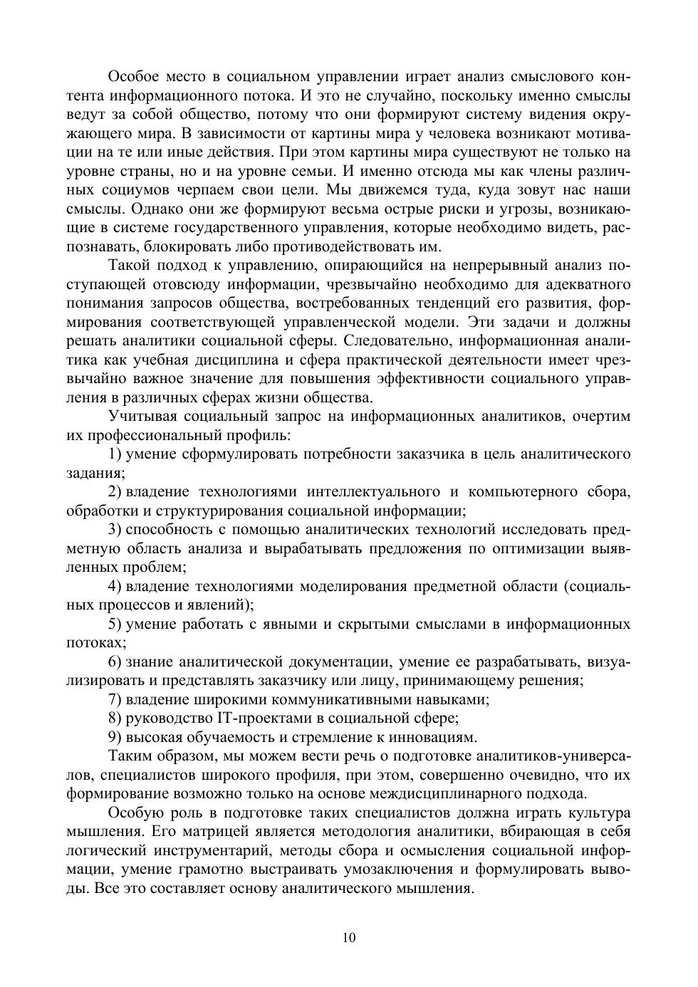 Дополненное издание учебника отвечает на главный запрос курса информационной аналитики – сто представляет собой «аналитическая кухня». Учебник ориентирован на изучение студентами основ информационной аналитики как инструмента совершенствования социального управления, а также на формирование практических навыков работы с семантической информацией. В нем сформированы основы категориального аппарата данного учебного и научного направления, объектом которого является информационное общество, и прежде всего его смысловые информационные поля. Показаны возможности использования технологий информационно-аналитической работы в профессиональной, интеллектуальной деятельности аналитика. Предназначен для студентов вузов, обучающихся по направлениям «Прикладная информатика», «Информационные системы и технологии», «Государственное и муниципальное управление», «Международные отношения», а также для других направлений, связанных с анализом смысловой информации и подготовкой предложений лицу, принимающему решение. Учебник может быть использован при подготовке работников информационных, информационно-аналитических отделов, и служб, а также всех тех, кто интересуется теорией и практикой этого перспективного вида интеллектуальной деятельности связанной с проблемами социальной (смысловой) аналитики.