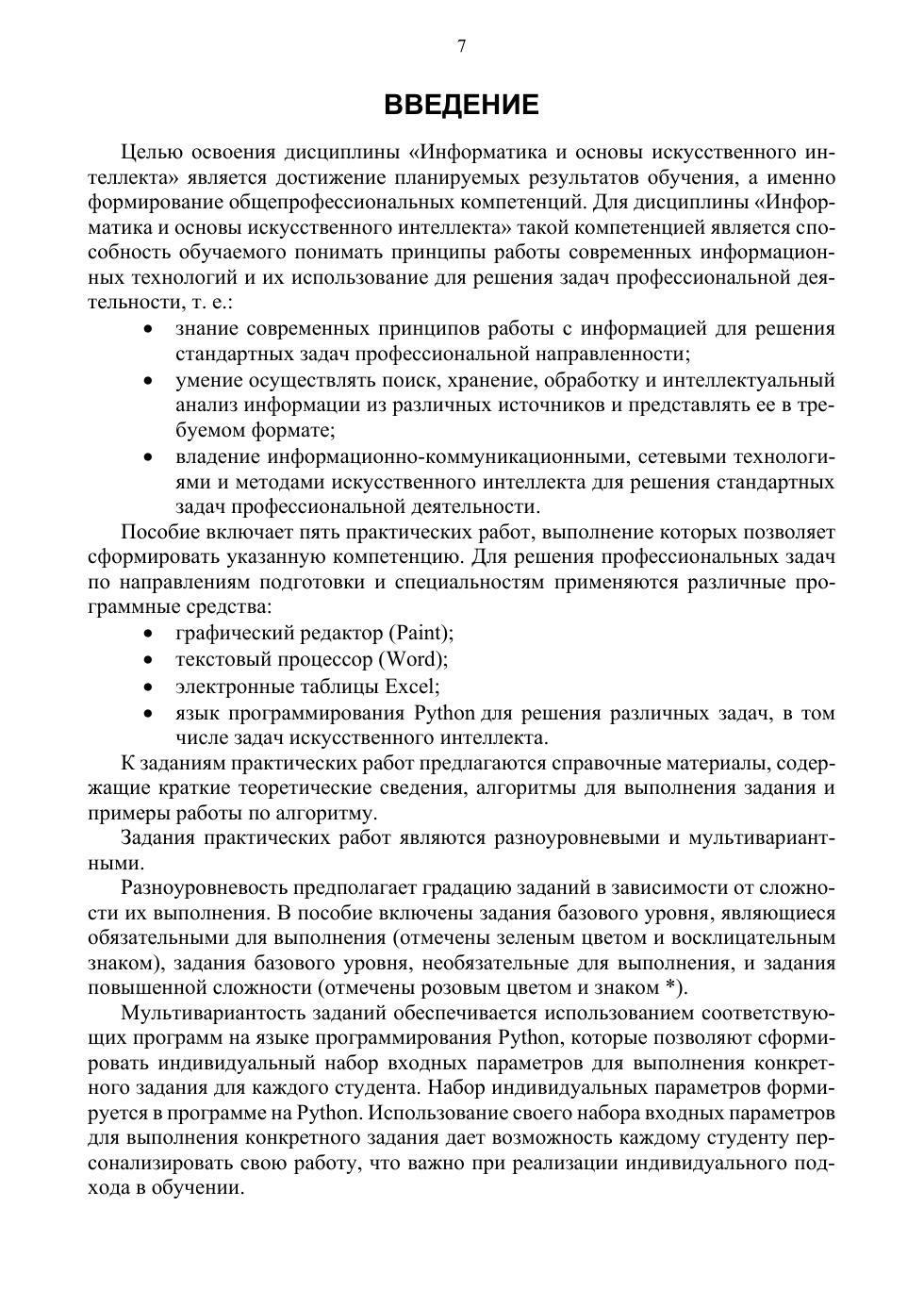 Информатика и основы искусственного интеллекта. Мультивариантные практические работы с программным обеспечением на Python