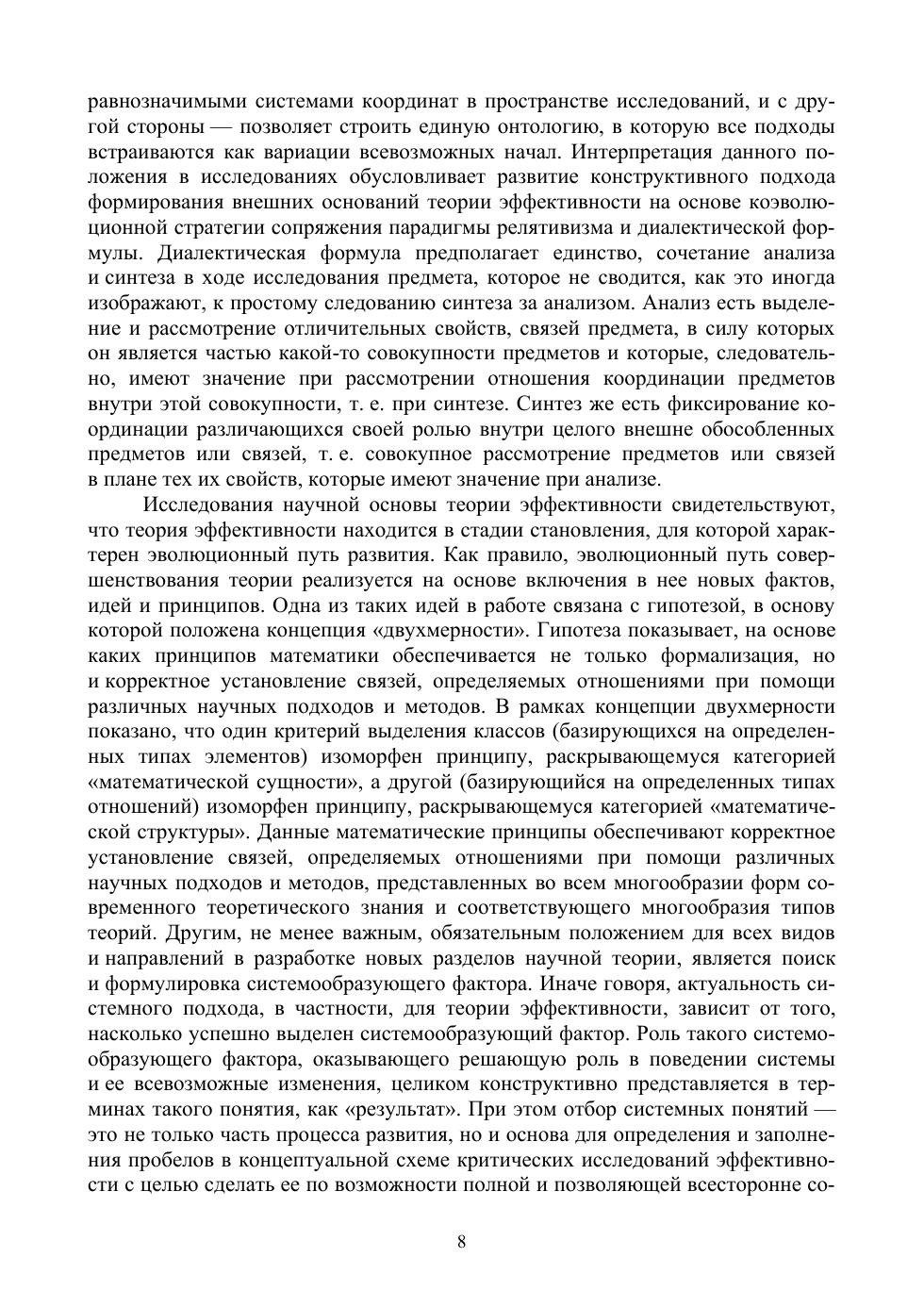 Популярность понятия «эффективность» привела к негативным последствиям, а именно к весьма широкой трактовке этого понятия и в качественном, и в количественном плане, что послужило причиной увеличения неоднозначности понимания понятия «эффективность» и множественности показателей, отражающих это понятие. Все это актуализировало необходимость проведения системных исследований с целью дальнейшего развития принципиальных положений теории эффективности сложных систем с позиции критического анализа. Такая позиция позволила раскрыть аксиоматику как отправную точку становления и формирования имманентных свойств и понятий теории эффективности. Опираясь на основополагающие понятия, появилась возможность изложить концепцию формирования собственных оснований теории и структуру внешних оснований. Данные основания, аксиоматика и формализованная процедура составили базу построения математической модели конструктивной оценки эффективности, отображающей сложные отношения результата, количественно характеризующего достижение цели через показатели качества, к величине затрат выделенного ресурса. Учебное пособие предназначено для студентов, аспирантов, научных сотрудников и руководителей, деятельность которых связана с созданием, совершенствованием и оценкой сложных комплексов и систем.