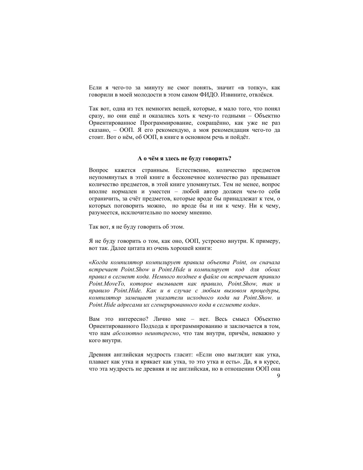 Прочитав эту книгу, вы узнаете всё, что надо знать об ООП и даже немного больше, чтобы использовать эту технологию в своей работе. Материал изложен в краткой, понятной форме по принципу «от простого к сложному» и сопровождается необходимыми примерами.