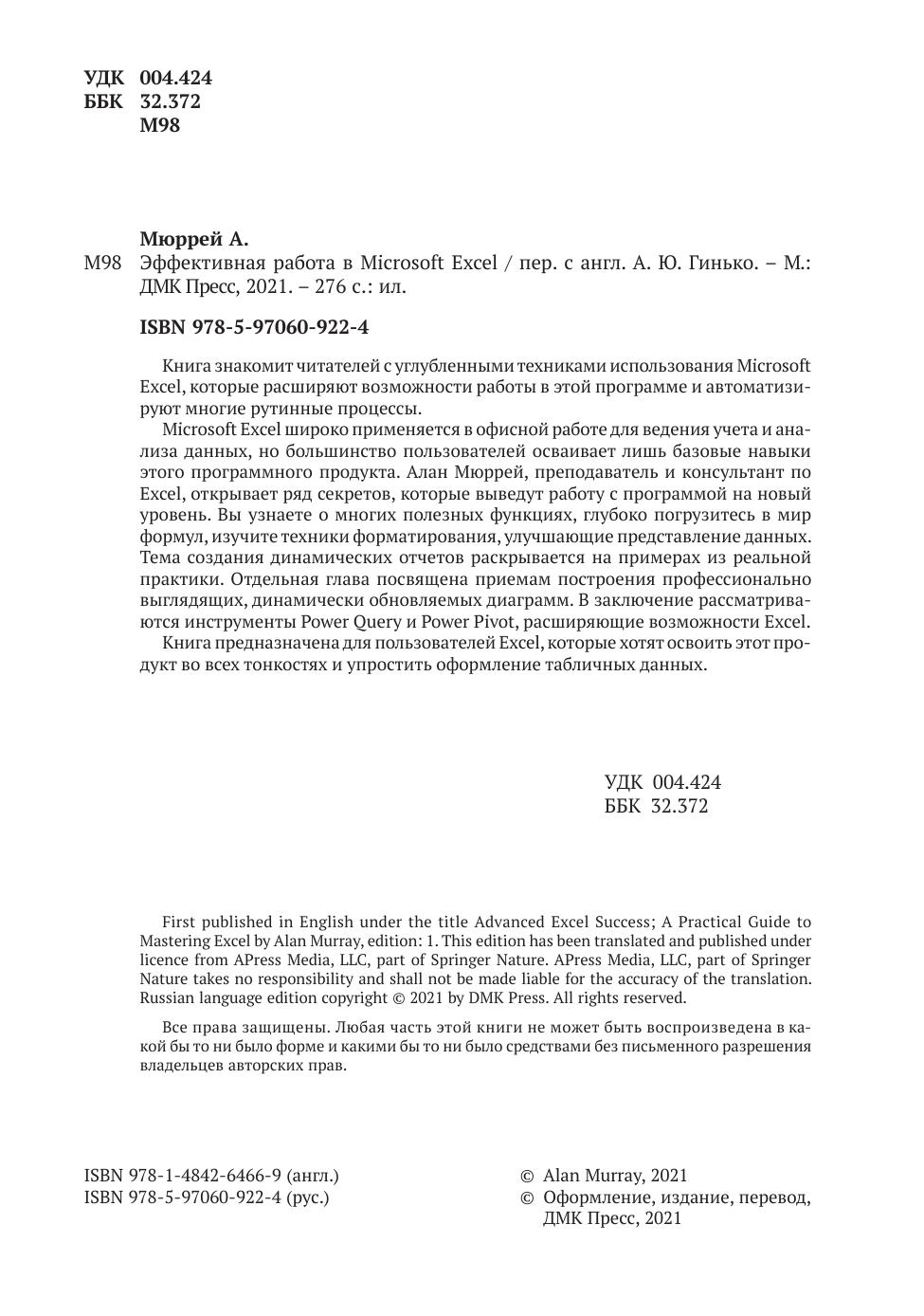 Издание пригодится специалистам, часто использующим в своей работе Excel и желающим автоматизировать рутинные процессы обработки данных.