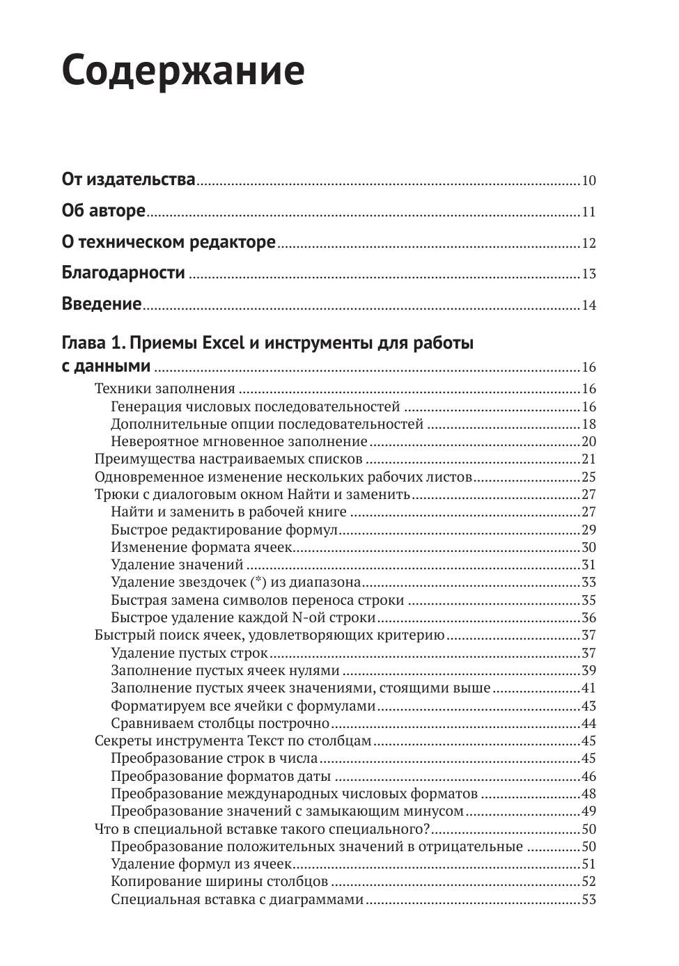 В главе 1 обсуждаются инструменты работы с данными. Показано, как быстро преобразовывать форматы даты и чисел, удалять строки и заполнять их нужными значениями, редактировать формулы и пользоваться специальной вставкой.