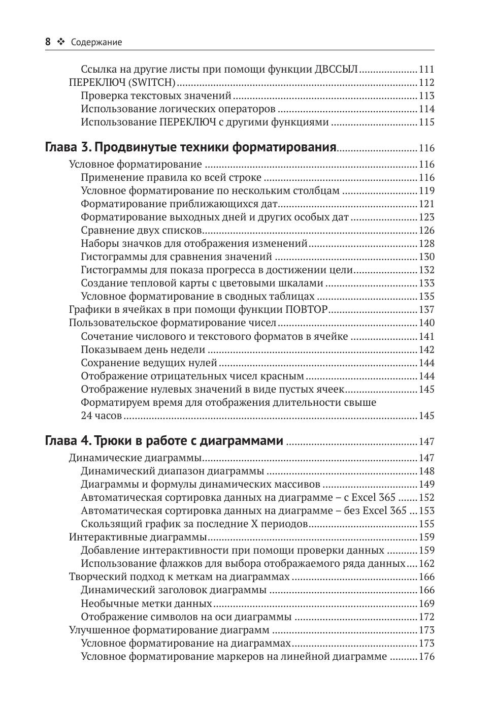 Из глав 3 и 4 читатель узнает о техниках форматирования, улучшающих восприятие табличной информации, и об особенностях работы с диаграммами.